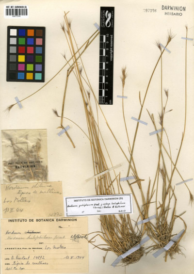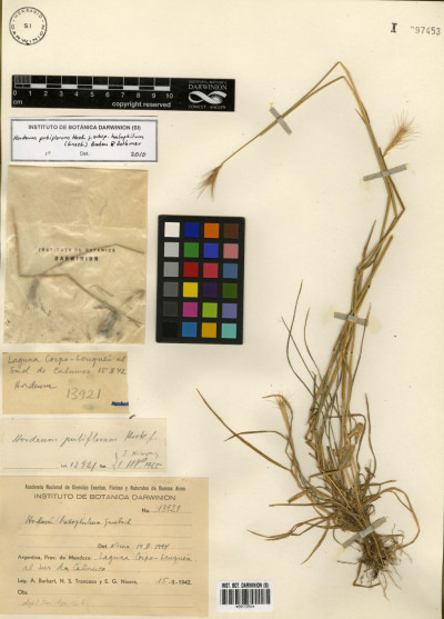 Hordeum pubiflorum Hook. f. var. intermedia (Hauman) Melderis, p.p. var. intermedia (Hauman) Melderis, p.p. Bot. Not. 3: 386. 1953