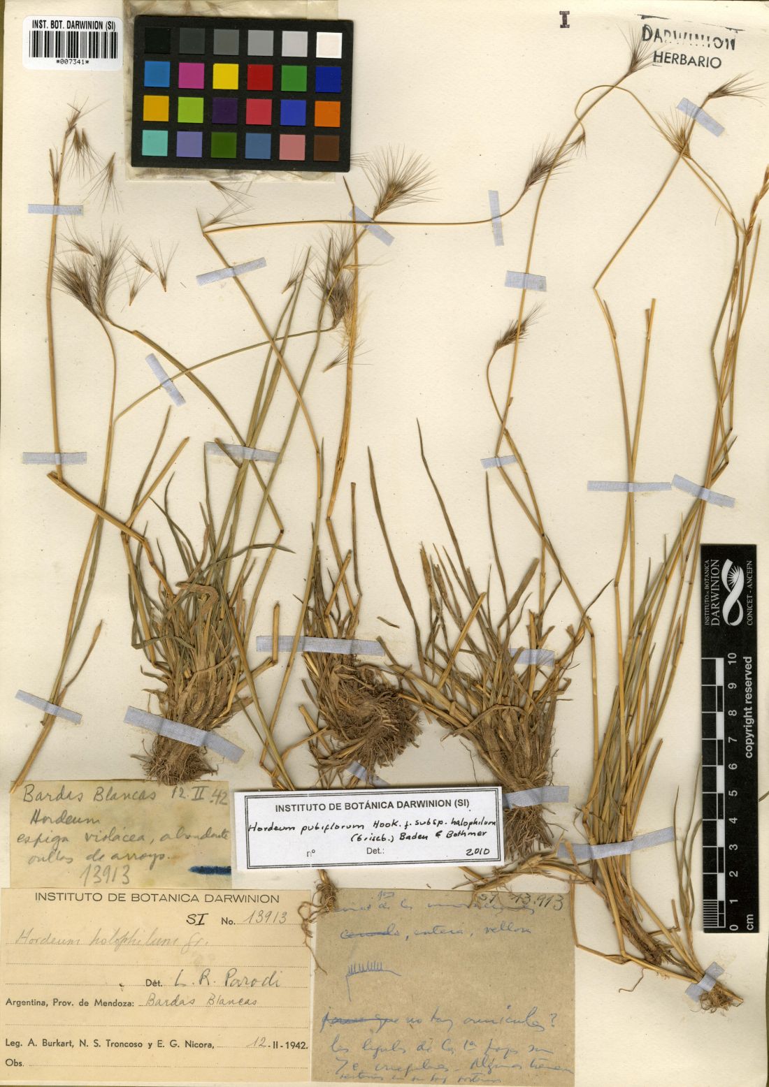 Hordeum pubiflorum Hook. f. var. intermedia (Hauman) Melderis, p.p. var. intermedia (Hauman) Melderis, p.p. Bot. Not. 3: 386. 1953