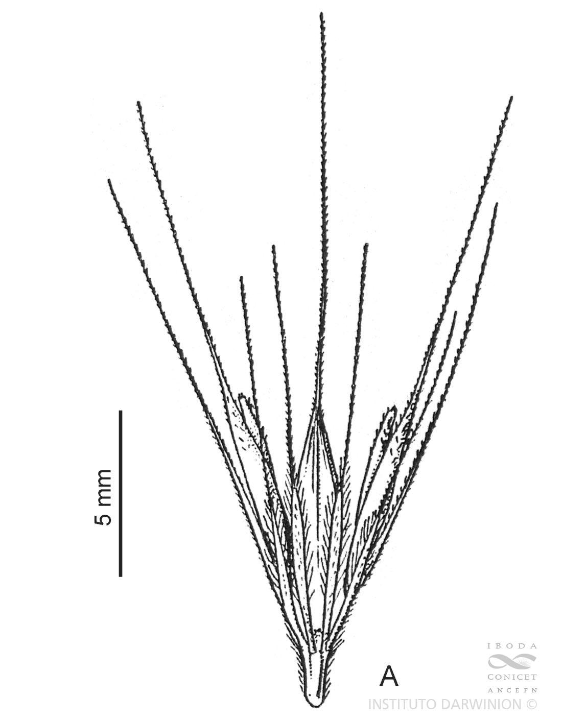 Plantas anuales, cespitosas, con cañas solitarias de (10-)25-80(-130) cm de alto, erectas a geniculadas o prostradas; nudos glabros; lígulas truncadas, de 0,8-1,6 mm de largo, dentadas; láminas de (30-)50-220 x 3-13 mm, planas o con los márgenes involutos, glabras a densamente pilosas; aurículas de 1-8 mm de largo, usualmente rodeando a las cañas. Inflorescencia una espiga de (15-)30-80(-120) x (5-)20-40 mm, usualmente verdosa, a veces purpúrea o broncínea a la madurez; raquis frágil. Espiguilla central pedicelada a sésil, pedicelos hasta de 2,1 mm de largo, con bordes pestañosos; glumas de 12-40 x 0,3-0,8 mm, lanceoladas, aplanadas y con los márgenes ciliados; cuerpo de la lemma de 8-12 mm de largo, menos de 2 mm de ancho, lisa, con aristas de (15-)20-40 mm de largo; lodículas glabras; anteras de 0,2-0,3(-3) mm de largo, verdosas a grisáceas, a veces con manchas violáceas; prolongación de la raquilla de 4-6 mm de largo. Espiguillas laterales usualmente desarrolladas, iguales o mayores que la espiguilla central, pediceladas, pedicelos de 0,6-2,1 mm de largo; glumas de 15-50 mm de largo, setáceas, aplanadas hacia la base y ciliadas; lemmas de 8-15 mm de largo, con aristas de 2-5 cm de largo; anteras de 0,8-3,2 mm de largo, similares a las presentes en la espiguilla central.