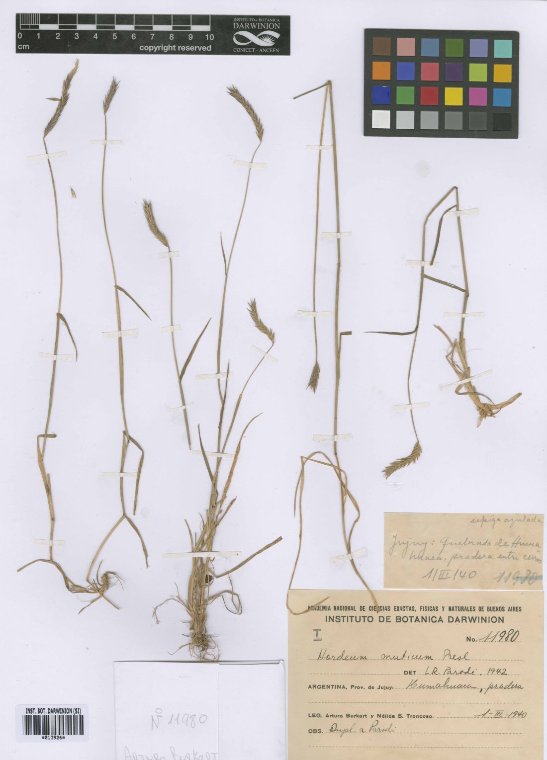 Plantas perennes, cespitosas, con cañas de (6-)15-50(-70) cm de alto, usualmente erectas, alargadas; nudos glabros; lígulas de 0,4-1,8(- 2,3) mm de largo, truncadas, ciliadas; láminas de 10-120(-140) x 1-3 mm, planas, las superiores a menudo involutas, glabras a densamente pilosas; aurículas ausentes. Inflorescencia una espiga de (20-)30-70(- 90) x 3-6 mm, verdoas a violácea a azulada; raquis frágil. Espiguilla central sésil; glumas de (3,6-)4-7,7(-9,5) x 0,2-0,3 mm, setáceas a aplanadas hacia la base, erectas, pubescentes o escabrosas, algo más cortas que las glumas laterales; cuerpo de la lemma de 4-7 mm de largo, glabro a esparcidamente escabroso en la porción superior, con 5 nervios inconspicuos, el ápice mútico, acuminado o aristado, arista de 0,6-3,7(-5) mm de largo; pálea truncada, glabra, con el ápice piloso; lodículas de 0,5-0,8 mm de largo, ciliada; anteras de (1,1-)1,3-2,7(-3,3) mm de largo, amarillas a violáceas; prolongación de la raquilla usualmente ausente o hasta de 4,5 mm de largo. Espiguillas laterales estériles, ocasionalmente estaminadas, pedicelos de (0,8-)1,3-2,3(-2,7) mm de largo; gluma inferior de 3,5-7,6(-9) x 0,2-0,3(-0,5) mm, aplanada a setácea; gluma superior de (3,5-)4,2-7,6(-9,3) x 0,1-0,3 mm, más o menos setácea a algo aplanada; anteras de 1 mm de largo.