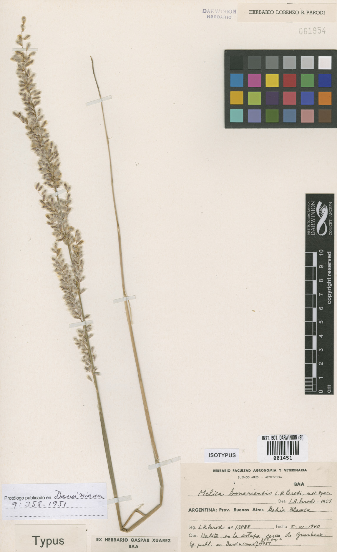 Material Tipo: Argentina. Buenos Aires. Bahía Blanca, 5 Nov 1940, L. R. Parodi 13888 (holotipo, BAA!; isotipos, SI!, US-1815679).