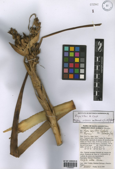 Material Tipo: Argentina. Tucumán. Dpto. Tafí Viejo. Quebrada La Hoyada, 23 Nov 1921, R. Schreiter 588 (holotipo, BA 27/2345; isotipos, BAF, GH 00029321, K 000321546, LIL 000156, NY 00247254, SI 000146).