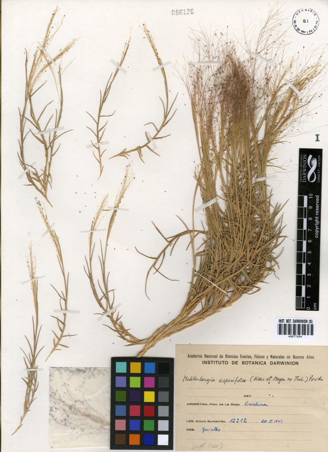 Plantas perennes, rizomatosas, no cespitosas, ocasionalmente estoloníferas; cañas de 10-60(-100) cm de alto, decumbente-ascendentes, glabras, brillosas debajo de los nudos; vainas de 1,5-7 cm de largo, glabras, márgenes hialinos, algunas veces comprimido-aquilladas cerca de la base; lígulas de 0,2-1 mm de largo, firmes, ciliadas, de ápice truncado, con los márgenes formando aurículas pequeñas; láminas de 2-7(-11) cm x 1-2,8(-4) mm, planas, ocasionalmente dobladas, glabras a escábridas en el envés y escábridas en el haz, apiculadas pero no puntiagudas. Inflorescencia una panoja ampliamente ovoide, abierta, de 6-22 x 4-16 cm; ramificaciones de 3-12 cm de largo, capilares, ascendentes, divergentes en ángulos de 30-90° con respecto al raquis, nunca fasciculadas; pedicelos de 3-14 mm de largo, más largos que las espiguillas, erectos, delgados, capilares. Espiguillas de 1,2-2,1 mm de largo, esporádicamente 2-3-floras, erectas; glumas de 0,6-1,7 mm de largo, iguales, 1-nervias, purpúreas, escábridas, especialmente a lo largo de la nervadura central, ápice agudo; lemma de 1,2-2,1 mm de largo, lanceolada a oblongo-elíptica, de tonos plomizos, glabra, ocasionalmente escábrida cerca del ápice, el ápice agudo, sin arista o mucronado, el mucrón de 0,3 mm de largo; pálea de 1,2-2,1 mm de largo, lanceolada, glabra, el ápice agudo; anteras de 1-1,3 mm de largo, verde-amarillentas a purpúreas en la madurez; cariopsis de 0,8-1 mm de largo, fusiforme, castaña.