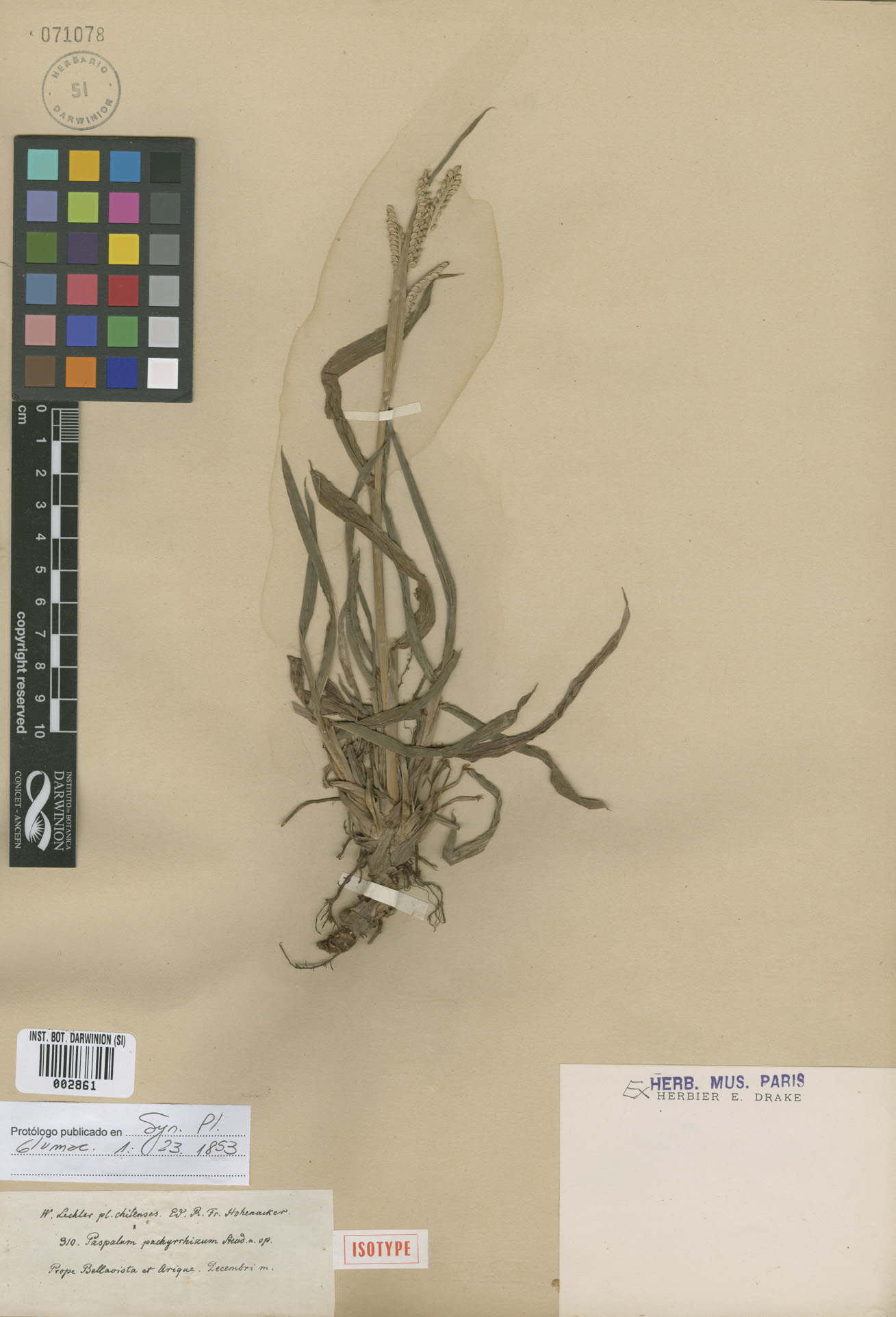 Material Tipo: Chile. VIII Región: Antuco, E. F. Poeppig 19(39) (lectotipo, M!, designado por F. O. Zuloaga & O. Morrone, Taxon 49: 559. 2000; isolectotipos, BM!, foto SI!, G!, P!, US-1819512!, W!).