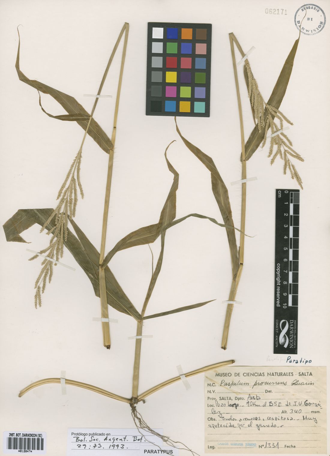 Material Tipo: Argentina. Salta. Dpto. Anta: 10 km al sur de Joaquín V. González, finca Pozo Largo, suelos arenosos, 340 m s.m., 14 Abr 1989, C. Saravia Toledo 2068 (holotipo, CTES!; isotipos, BAA!, K!, SI!, US!).