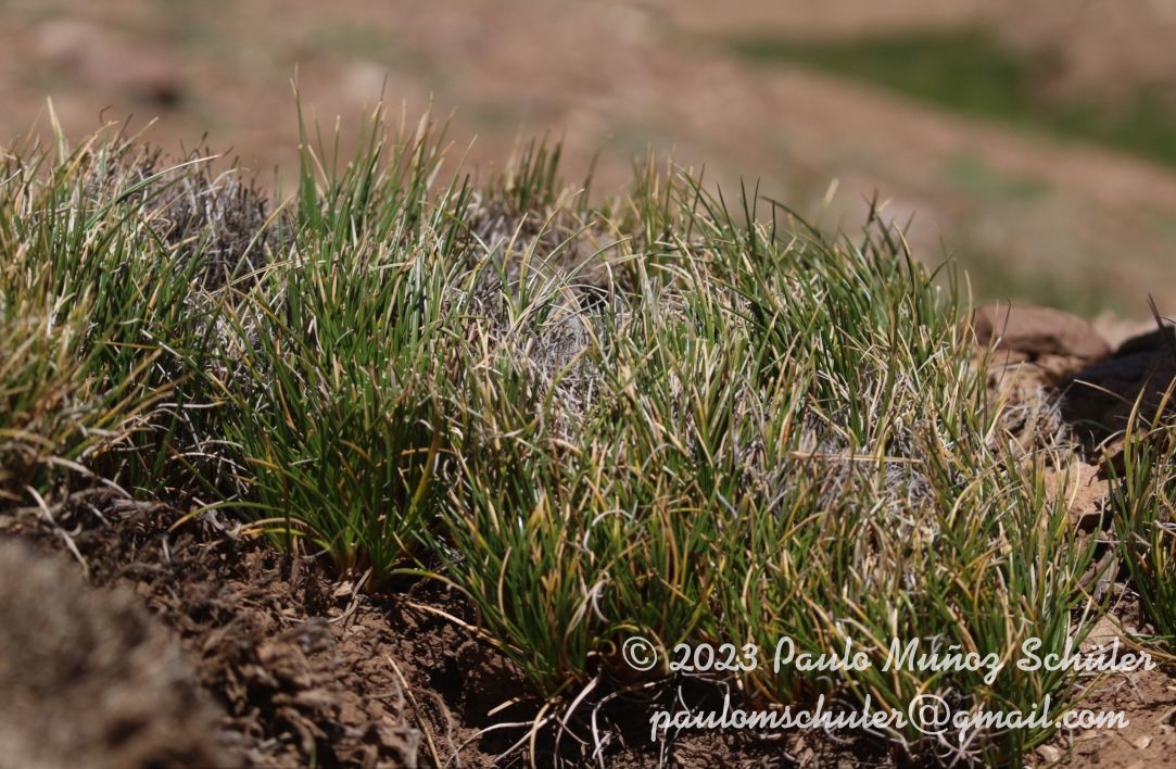 Densamente cespitosa. Tallo de 3,5-4 cm, cubierto por las vainas foliares. Hojas numerosas de 8-12 cm, lámina semicilíndrica, nervios prominentes, de bordes ligeramente escabrosos. Espiguilla andrógina de 10 x 5 mm; bráctea inferior foliácea, fértil; porción masculina con 2-3 flores triandras; glumas femeninas agudas, mucronadas, todas fértiles. Utrículos de 5-6 x 2,5 mm, terminados gradualmente en rostro brevísimo apenas bidentado; estigmas 3. Aquenio obovoide de 2,6 mm; raquilla secundaria de 3 mm, oval, terminada por un apéndice setiforme.