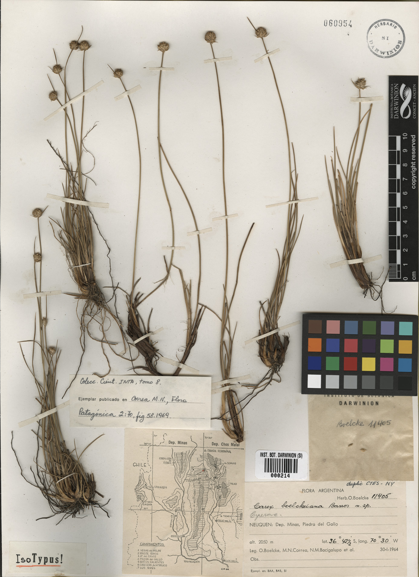 Material Tipo: Lectotype (here designated): ARGENTINA: Neuquén. Dpto Minas, Piedra del Gallo, 2050 msm, O. Boelcke 11405 (BAA-00001212!, iso, BAA-00001213, BAA-00001214, NY-00011455, CTES-0000131 digital images!).