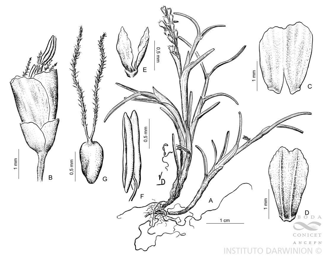 Material Tipo: Argentina. Mendoza, Cajón del Burro, 3100 m s.m., Ene 1897, R. Wilck 564 (holotipo, W; isotipos, B, BAA-2365, fragm. ex B, US).