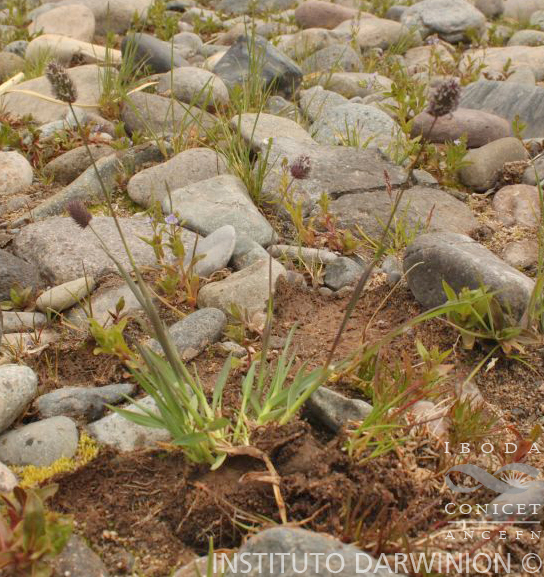 Plantas perennes, cañas postradas, rastreras, porción erguida de 9-30(-60) cm de alto; entrenudos 3-5, hasta de 15 cm de largo; nudos castaños a púrpuras, glabros; vainas usualmente más largas que los entrenudos, glabras, estriadas, las superiores flojas; lígulas de 1,5-2 mm de largo, truncadas, glabras; láminas lineares, de 5-10(-15) cm x 3-7 mm, planas, disminuyendo en tamaño hacia el ápice de las cañas, glabras, de base subredondeada y ápice agudo, los márgenes escabrosos. Inflorescencias de 1-5 cm x 5-10 mm, oblongas a cilíndricas, verdosas a generalmente violáceas, en ocasiones con una bráctea basal; pedicelos breves, pubérulos. Espiguillas de 5-8 mm de largo incluyendo la arista, lateralmente comprimidas; glumas subiguales, tan largas como la espiguilla, de ápice truncado, terminando en una arista recta o curva, gruesa, escabrosa, de 1,5-3 mm de largo, aquilladas, con pelos rígidos, brillantes, distribuidos a lo largo de la quilla hasta la base de la arista, el resto e la superficie con pelos cortos, los márgenes membranáceos, 3-nervias, con los nervios laterales próximos al nervio medio; lemma hialina, ca. 2 mm de largo, ½-? del largo de la espiguilla, de ápice truncado y subdentado, 3-5-nervia, el nervio medio ligeramente superando el ápice, escabroso en toda su longitud, los nervios restantes sólo en la porción superior; pálea con ápice obtuso, 2-aquillada, quillas aproximadas; raquilla no prolongada; anteras de 1-2 mm de largo; cariopsis ovoide, de 1,5-2,5 mm de largo; hilo ovado.