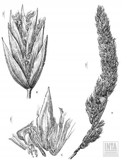 Observaciones: Se la reconoce por el mayor número de nervios en glumas y glumelas. Los ejemplares identificados como Poa barrosiana sólo se reconocen por carecer de pelos en los antecios pistilados, pero esta variante no corresponde a poblaciones diferenciadas sino mas bien a ejemplares aislados dentro poblaciones con antecios pilosos, por lo que se decidió la sinonimia. Asimismo, existe una transición entre ejemplares de mayor porte y con 5-7(-9) nervios en glumas y glumelas, a otros de menor porte con menor número de nervios, de 3-5. Estos últimos se identifican como Poa lanuginosa, pero es necesario un estudio que determine su diferenciación de los que habitan en suelos consolidados y arenosos, formando parte de pastizales más desarrollados.