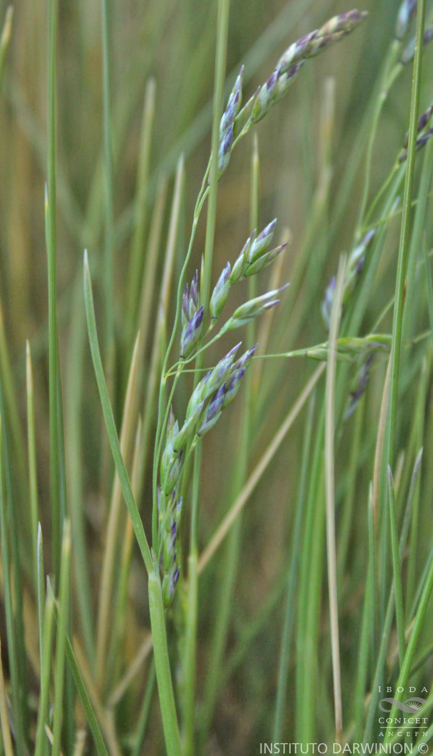 Plantas ginomonoicas atípicas, perennes, cespitosas, de 20-70 cm de alto, con 2 entrenudos largos; hojas de 35-45 cm de largo, erguidas; vainas hasta de 30 x 5,5 mm, con asperezas en la parte superior y glabras y lisas hacia la base; lígulas de (2,5-)5-8 mm de largo, agudas, enteras, escasamente pilosas en el envés, decurrentes con la vaina; láminas de 10-15 cm x 1,8-3,5 mm, plegadas o involutas, rígidas, ásperas. Inflorescencias de 12-28 x 5-8 cm, exertas, ovadas, abiertas, laxas, con ramas patentes, 2 (raro 3) ramas en los nudos basales de la panoja, porción basal de las ramas desprovistas de espiguillas. Espiguillas de 4,2-6 x 2,5-3 mm, 3-4-floras, pedicelos cortos de 1 mm de largo, pilosos; glumas ligeramente desiguales, ambas del mismo ancho, glabras y con bordes membranáceos; gluma inferior de 3 mm de largo; gluma superior de 3,7 mm de largo, 3-nervia; lemma de 4-4,5 x 2-2,4 mm, subaguda, algo escabrosa en la mitad inferior; pálea de 3,5 x 0,8 mm, escabrosa sobre los nervios; antecios basales perfectos, los distales pistilados, con androceo reducido a 3 estaminodios; flores perfectas con anteras de 2-3,2 mm de largo; cariopsis de 2 mm de largo.