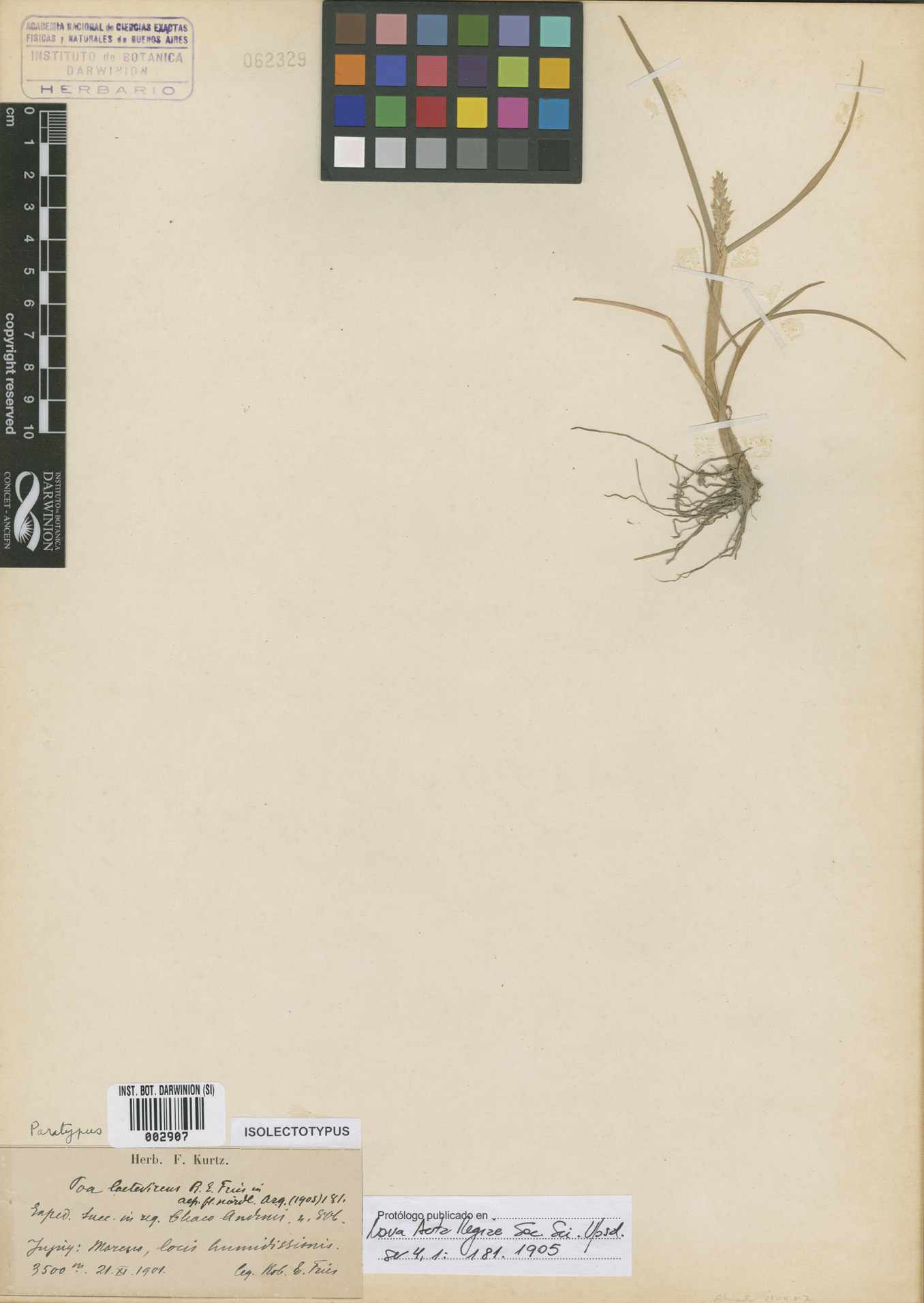 Material Tipo: Argentina. Jujuy. Tumbaya: Moreno, 3500 m, R. E. Fries 806 (lectotipo, S, designado por M. A. Negritto & A. M. Anton, Kurtziana 27: 366. 1999; isolectotipos, BAA!, fragmento, CORD!, US-946937! ex S, US-1162321! ex S),