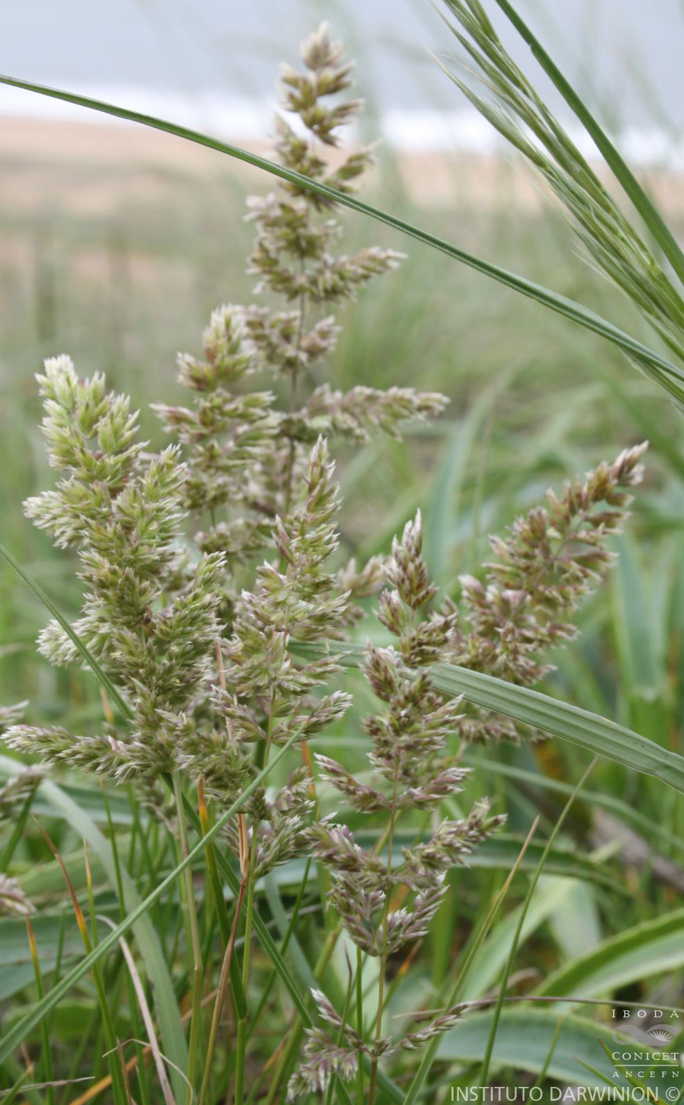 Plantas perennes, dioicas, glauco-verdosas, cespitosas, suelen formar matas densas, con bases subbulbosas e innovaciones intravaginales; cañas de (15-)25-70 cm de alto, erguidas, flexibles, de 1-2 mm diámetro, nudos 2-4, exertos; vainas foliares de (3-)5-15 cm de largo, cartilagináceas, estriadas, glabras, ensanchadas en su base y con repliegue hialino; lígulas truncadas, aovadas, membranáceas, de (0,5-)1-2(-4) mm de largo; láminas foliares de 8-25(-40) cm x 1-3(-4) mm, plegadas a planas, laxas, flexibles, con ápice navicular. Inflorescencias de (4-)8-15(-25) x 1-4(-6) cm, aovado-lanceoladas, contraídas a piramidales, densas, las ramas de los nudos basales más largas y algo abiertas, con 7-16 nudos. Espiguillas glabras, las pistiladas y estaminadas de 4-7 mm de largo, 3-5(-7)-floras; glumas lanceoladas, subiguales, con quilla algo escabrosa en el dorso; gluma inferior 1-nervia, en la espiguilla pistilada de 3-4,5 x 0,6-0,9 mm, en la estaminada de 2,5-3,5 x 0,6-0,9 mm; gluma superior 3-nervia, en la espiguilla pistilada de 3,8-4,2 mm de largo, en la estaminada de 2,2-3,5 mm de largo; callo de los antecios pistilados con pelos lanosos y largos; lemma membranácea, lanceolada, 5-nervia, glabra o pubescente entre los nervios, quilla y nervios marginales ciliados, la de los antecios pistilados de 4-6 mm de largo x 0,8-1,1 mm de semiancho, la de los antecios estaminados glabra o algo pubescente, de 3-4 mm de largo x 0,7-1,1 mm de semiancho; pálea hialina de (2-)2,5-3,5(-4,5) x 0,5-0,8(-1) mm, 2-carinada, carinas escabrosas; estaminodios diminutos; anteras de 1,5-1,7 mm de largo; cariopsis obovoidea-elipsoidea, subtrígona, de 2 mm de largo.