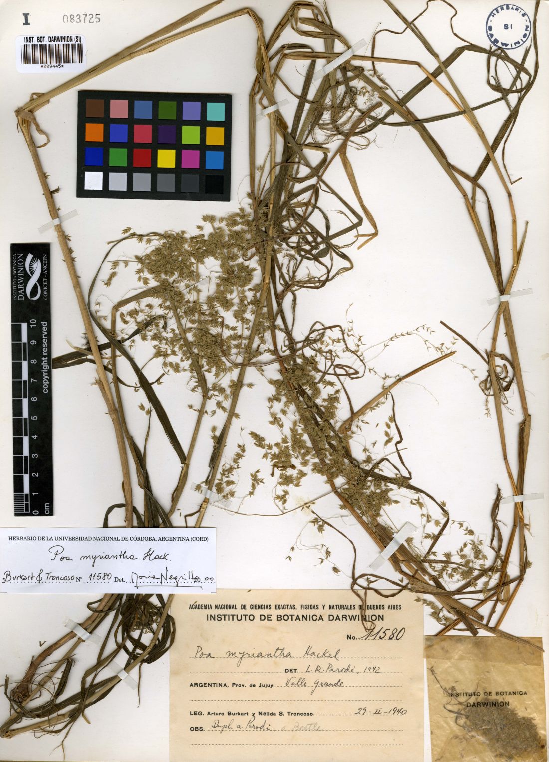 Observaciones: Poa myriantha y P. hieronymi fueron sinonimizadas por Foster (1966); Anton (1978) no aceptó este criterio, opinión que se mantiene aquí, ya que si bien se las considera especies afines, pueden diferenciarse por los caracteres que aparecen en la clave.