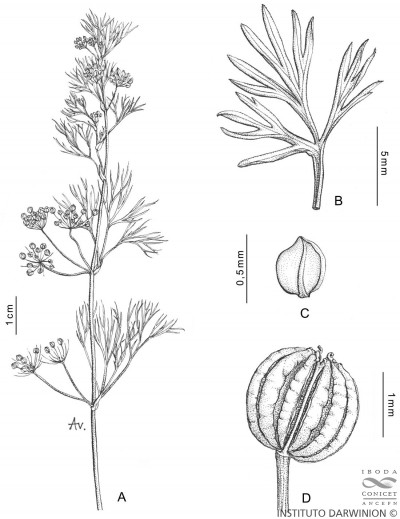 Observaciones: Nom. inval. according to ICN Art. 36.1 (not accepted by the author) [De acuerdo con Tropicos.org]. Nombres vulgares. “Apio cimarrón”, “apio silvestre”. Se aplican a esta variedad los nombres Ciclospermum ammi Lag., Amen. Nat. Españ. 1(2): 101. 1821, Apium ammi Urb. in Martius, Fl. Bras. 11 (1): 342. 1879, Apium ammi Urb. var. genuinum H. Wolff in Engler, Pflantzenr. 4 (228) Heft. 90: 54.1927, todos basados en la designación ‘Sison ammi’ sensu Jacq. (Hort. Bot. Vindob. 2: 95. 1773, tab 200), una incorrecta aplicación de Sison ammi L. (= Trachispermum ammi). Este taxón tiene una extensa sinonimia y, como el género mismo, una compleja historia nomenclatural; estos temas se encuentran tratados en Burtt, 1989 (en la propuesta de conservación del nombre genérico) y en Constance (1990).