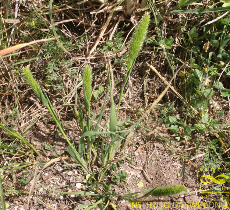 Plantas de 5-20 cm de alto; lígulas de 1-2 mm de largo; láminas de 2-15 cm x 1-3 mm, lineares, planas, pilosas. Inflorescencia en panoja espiciforme densa de 1,5-6(-12) cm de largo. Espiguillas 4-6-floras, excepcionalmente 1-2 espiculadas, de (2,8-)4-5(-7) mm de largo, cortamente pediceladas; glumas cortamente pilosas, excepcionalmente glabras, la inferior 1-nervia, de 2-2,5 mm de largo, la superior 3-nervia, de 3-3,5 mm de largo; lemma de 2,8-3,7 mm de largo, lanceolada, 5-nervia, pilosa, pelos con base tuberculada o tuberculado-hirsuta, con el ápice 2-dentado y con arista de 1-3 mm de largo, recta, que nace entre ambos dientes; pálea menor que la lemma, hialina, 2-dentada; estambres 3, de 0,2-0,5(-1,2) mm de largo; cariopsis comprimida lateralmente, libre entre las glumelas.