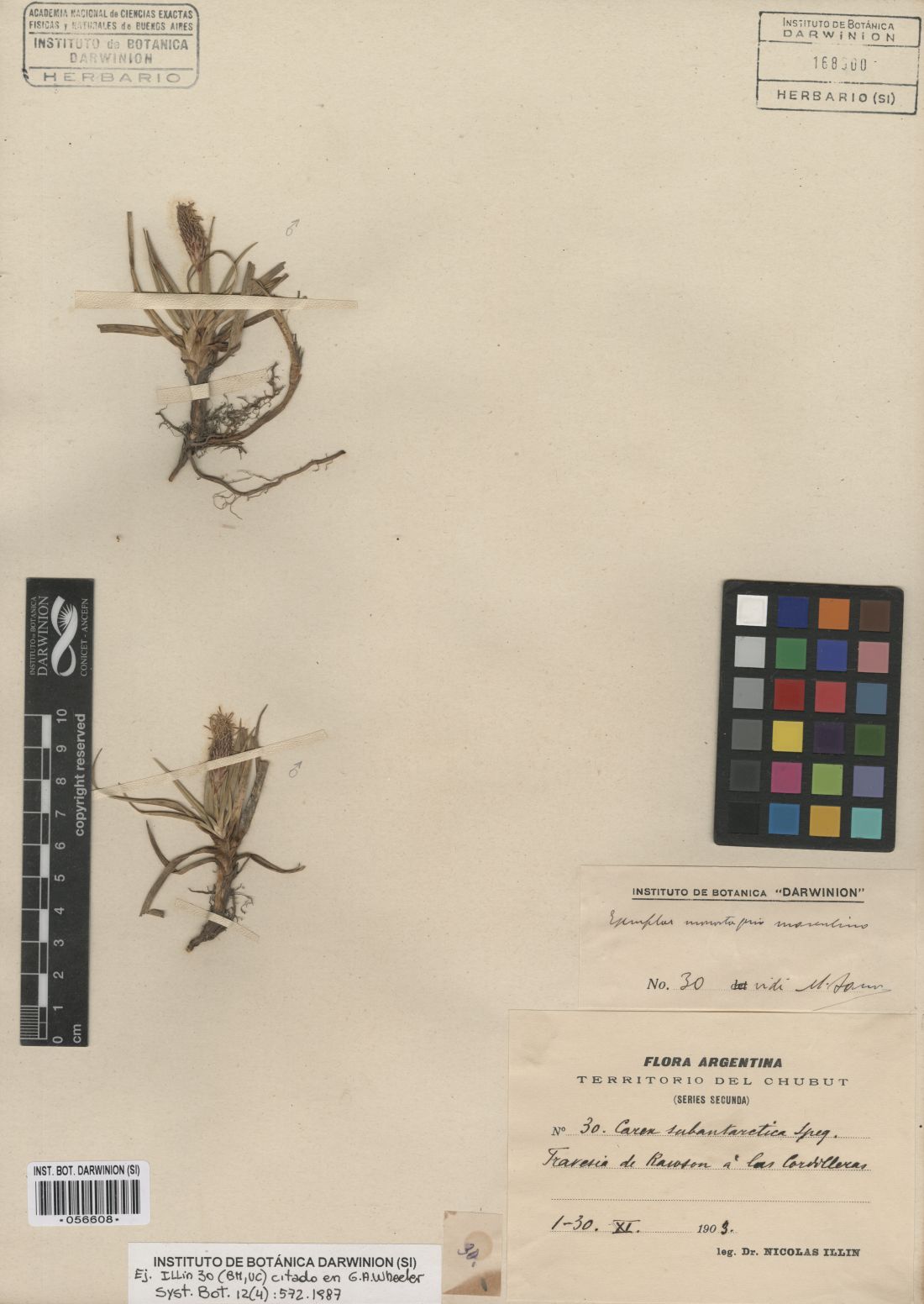 Material Tipo: Argentina. Chubut. “Campamento 57", 16 Mar 1900, sin colector s.n. (lectotipo, LP-003037!, designado por Jiménez Mejías et al., Bol. Soc. Argent. Bot. 51: 735. 2016)