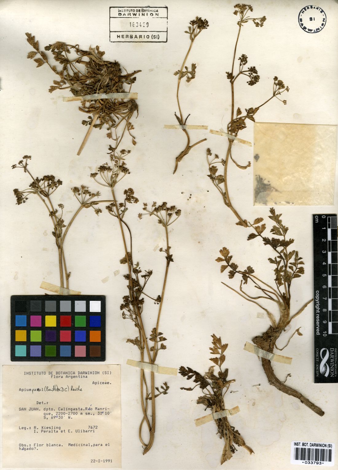 Observaciones: Protólogo alternativo: Fl. Chile 3: 111. 1902. Es una especie muy variable, particularmente en los caracteres vegetativos, la amplia sinonimia se basa en gran parte en la diversidad de las hojas en tamaño forma y grado de división de la lámina. Apium panul ha sido frecuentemente confundida con Apium sellowianum, en parte porque varios ejemplares asignables a A. panul integran el extenso sintipo de A. sellowianum [ej. Schikentdanz n. 112 (CORD), Hieronymus & Niederlein 706 (CORD), Hieronymus & Lorentz 666, 852 (CORD); ver observaciones bajo esta última especie]. Apium sellowianum se distingue por ser una planta bienal, con los tallos floríferos delgados, flojos y muy ramificados, mientras que A. panul es perenne, con tallos floríferos moderadamente ramificados y erectos; estos caracteres no son siempre evidentes en material herborizado. Nombre vulgar. “Panul”.