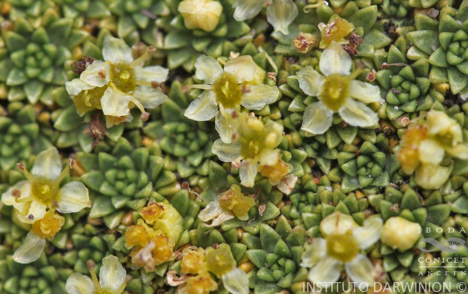 Subarbustos formando cojines muy compactos, extensos, hasta de 1 m de alto, ramas viejas cubiertas por las bases foliares persistentes. Hojas arrosetadas en el extremo de las ramas, de 3-10 mm de largo, sésiles, crasas, coriáceas; lámina oblonga, de 2-4 × 1-2 mm, entera, glabra, aguda a redondeada, mucronada, decurrente hacia la base foliar; base foliar algo envainadora, membranácea, con pocas cilias o sin ellas, sin estípulas. Umbelas 1-5-floras, perfectas; sésiles o subsésiles; involucro de brácteas generalmente en igual número que las flores, margen con cilias o sin ellas, libres o connadas en la base. Flores amarillas; cáliz de dientes bien desarrollados; pétalos oblongos, hasta de 2 mm de largo; pedicelos hasta de 3 mm de largo. Frutos ápteros, ovoides a orbiculares, de 4-5 × 3-4 mm; costillas notorias por el marcado desarrollo de los canales secretores. Carpóforo ausente