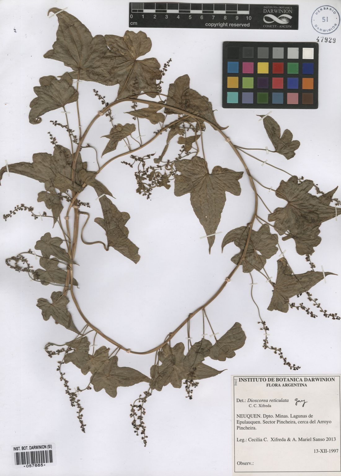 Dioscorea brachybotrya Poepp. var. reticulata (Gay) Uline ex R. Knuth var. reticulata (Gay) Uline ex R. Knuth Notizbl. Bot. Gart. Berlin-Dahlem 7: 206. 1917