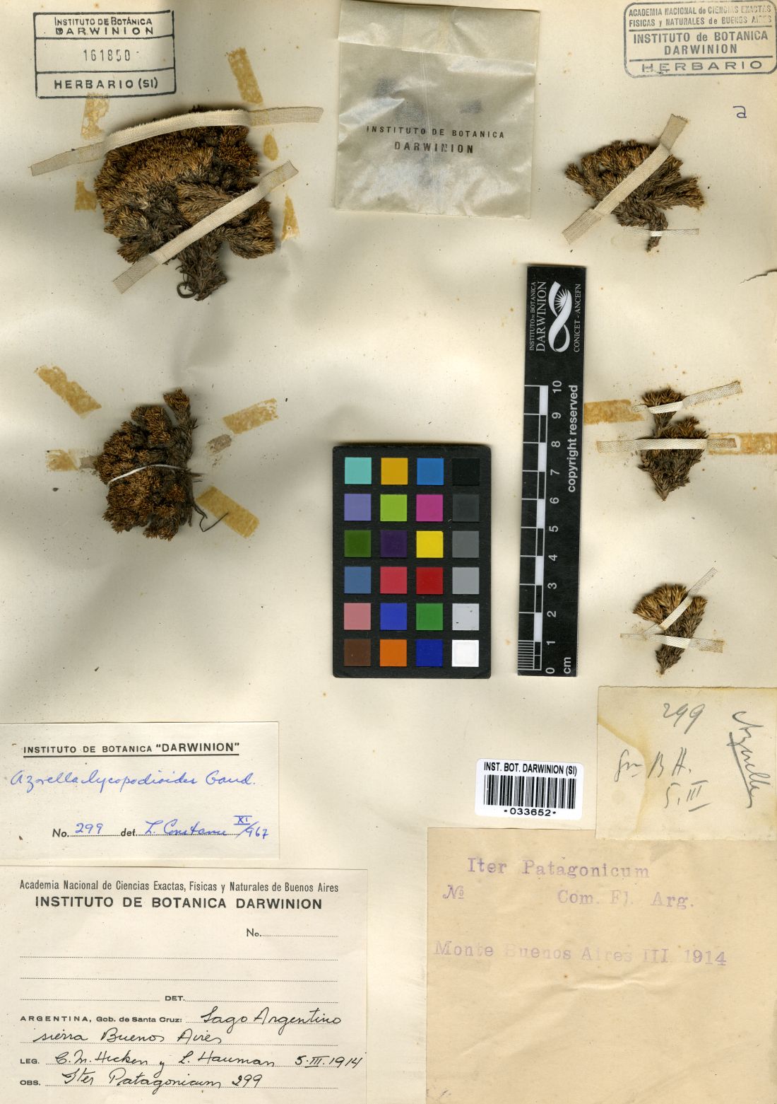 Azorella lycopodioides Gaudich. var. chilensis Gay var. chilensis Clos Fl. Chil. 3: 83. 1847(1848)