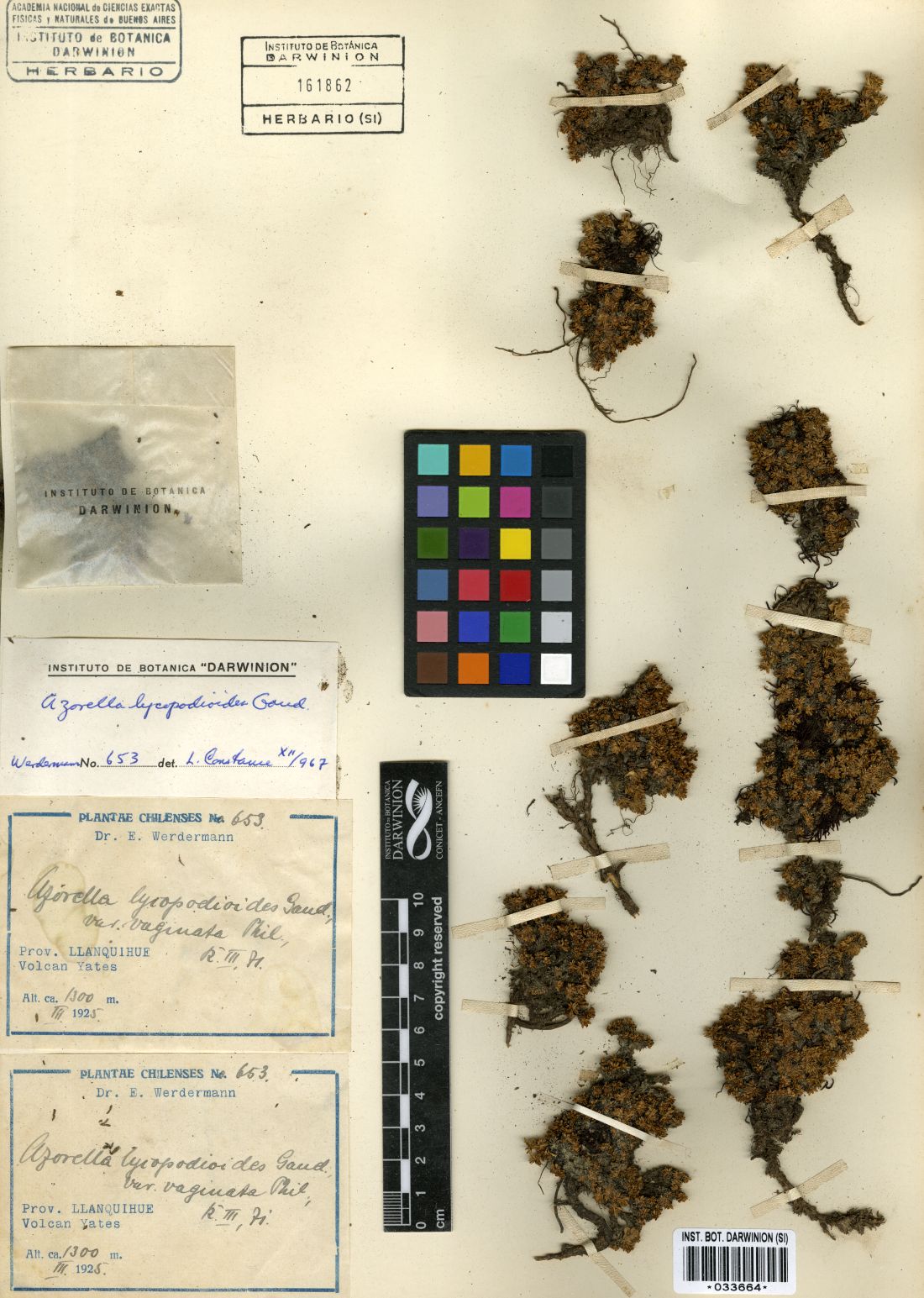 Azorella lycopodioides Gaudich. var. chilensis Gay var. chilensis Clos Fl. Chil. 3: 83. 1847(1848)