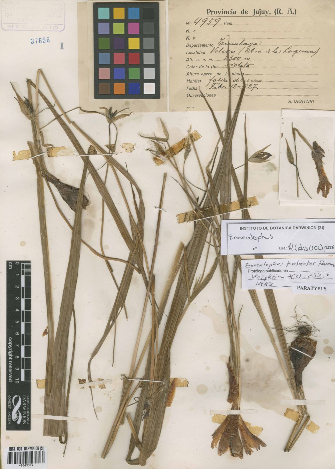 Material Tipo: Argentina. Cultivada en Buenos Aires de bulbos provenientes de las cercanías de Volcán (Jujuy), Nov 1960, P. Ravenna 78 (holotipo, Herb. Ravenna).