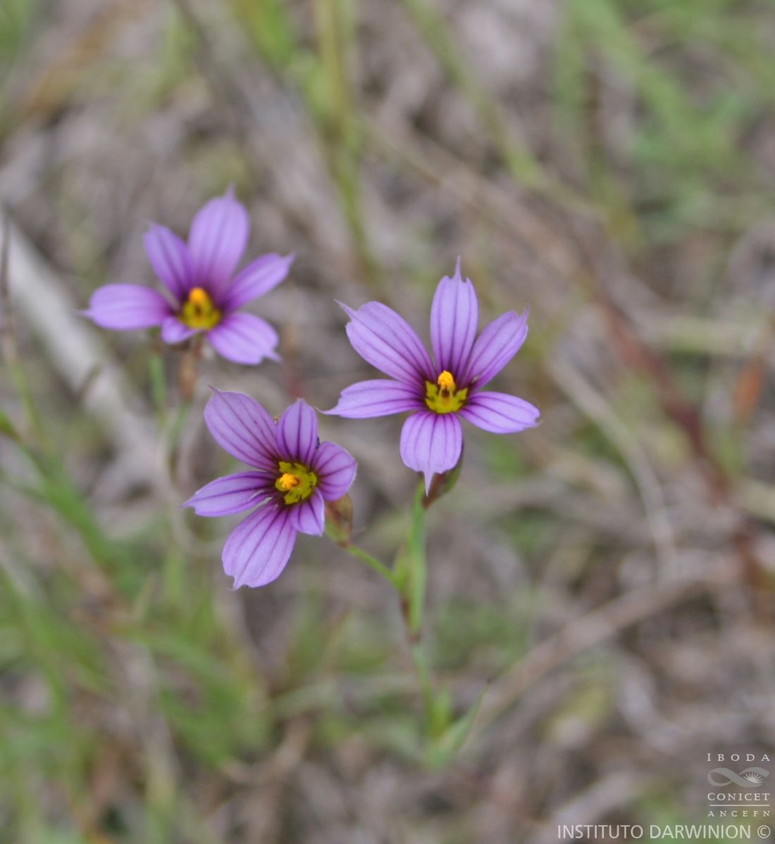 Plantas de 10-50 cm de altura. Rizoma corto con muchas raíces fasciculadas, carnoso-fibrosas con frecuencia de color rojizo. Hojas basales numerosas, lineares, verde-grisáceas, de 7-25 cm × 2-4 mm, de bordes ásperos, ciliados. Tallos florales numerosos en cada mata, alado-ancipitados, de bordes ciliados, con 2-3 hojas gradualmente reducidas hacia el ápice y brácteas. Espatas hasta 7, rara vez más, multifloras, de 12-15 mm de largo; brácteas casi iguales, de bordes algo escarioso-membranosos. Flores violáceas, de 10-20 mm de diámetro. Tépalos inferiormente contiguos, formando una copa, oblanceolados, de 12-17 mm de largo, los exteriores de 3,5-4,5 mm lat., los interiores más angostos, ambas series con apículo. Columna estaminal ventricosa, de 1,9 mm de largo, densamente cubierta por elaióforos hacia la base, más angosta y con pelos glandulares, ralos hacia el ápice. Anteras contiguas, derechas, de 1-1,2 mm de largo Ovario obovoide, piloso-glanduloso, de 1,2 × 0,8-1 mm. Ramas del estilo muy pequeñas, en gran parte soldadas entre sí. Cápsula obovoide o casi globosa, irregular, de 4-5 × 3,5 mm. Semillas diminutas, negras.