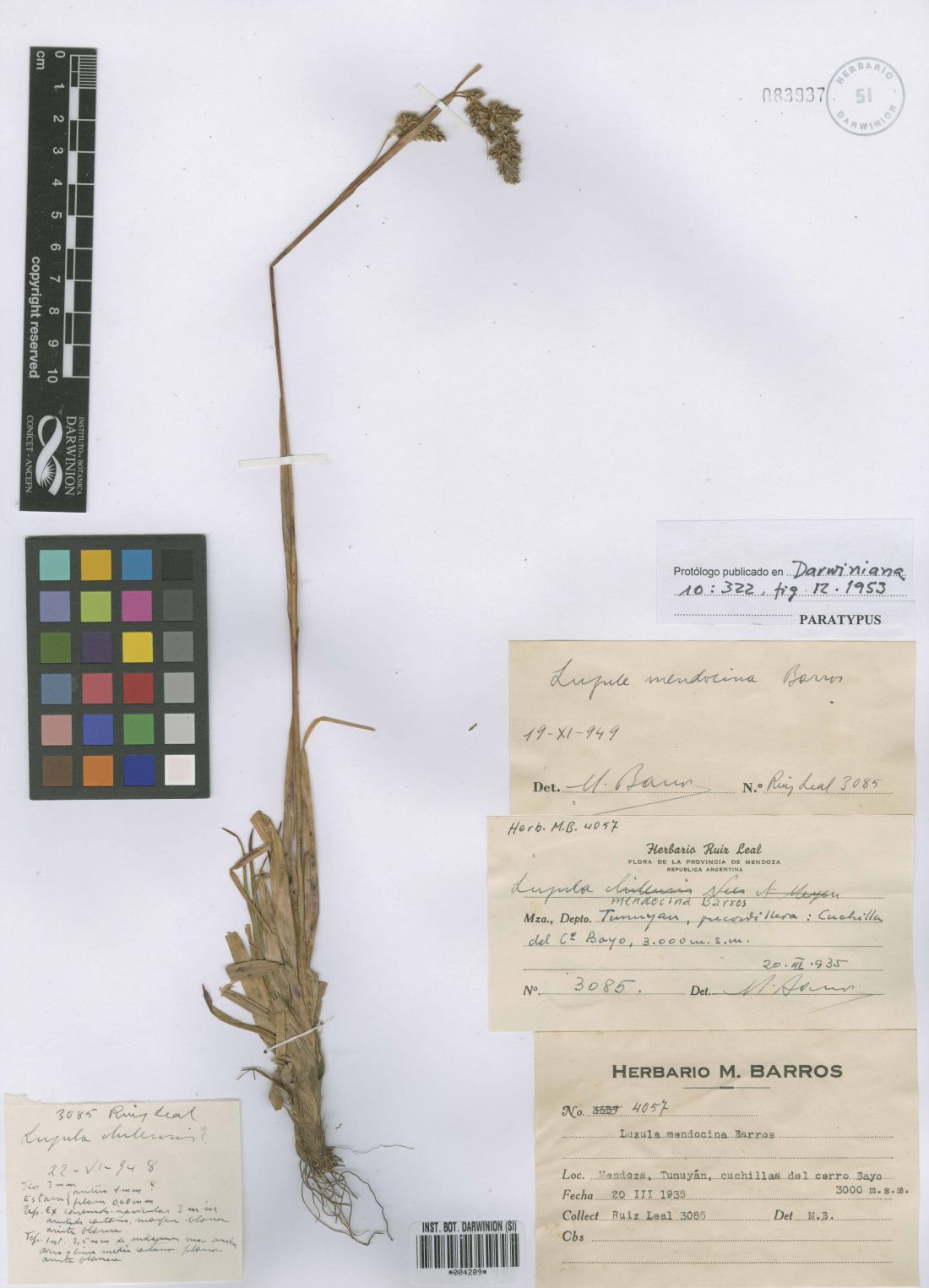 Material Tipo: Argentina. Mendoza. Dpto. Tunuyán. Cerro de las Piedras, precordillera, 2200 m, 23 Mar 1935, A. Ruiz Leal 3105 (CORD 00002436, LIL 000201, LIL 000202, SI 000336).