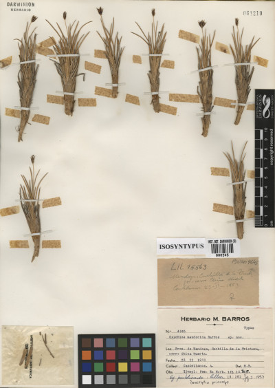 Material Tipo: Argentina. Mendoza. Cuchilla de la Tristeza, cerro China Muerta, 23 Feb 1953, A. Castellanos s.n. (CAS 0003705, LIL 001416, MU 000075133, US 01920005, US 00091652, ¿BA?).