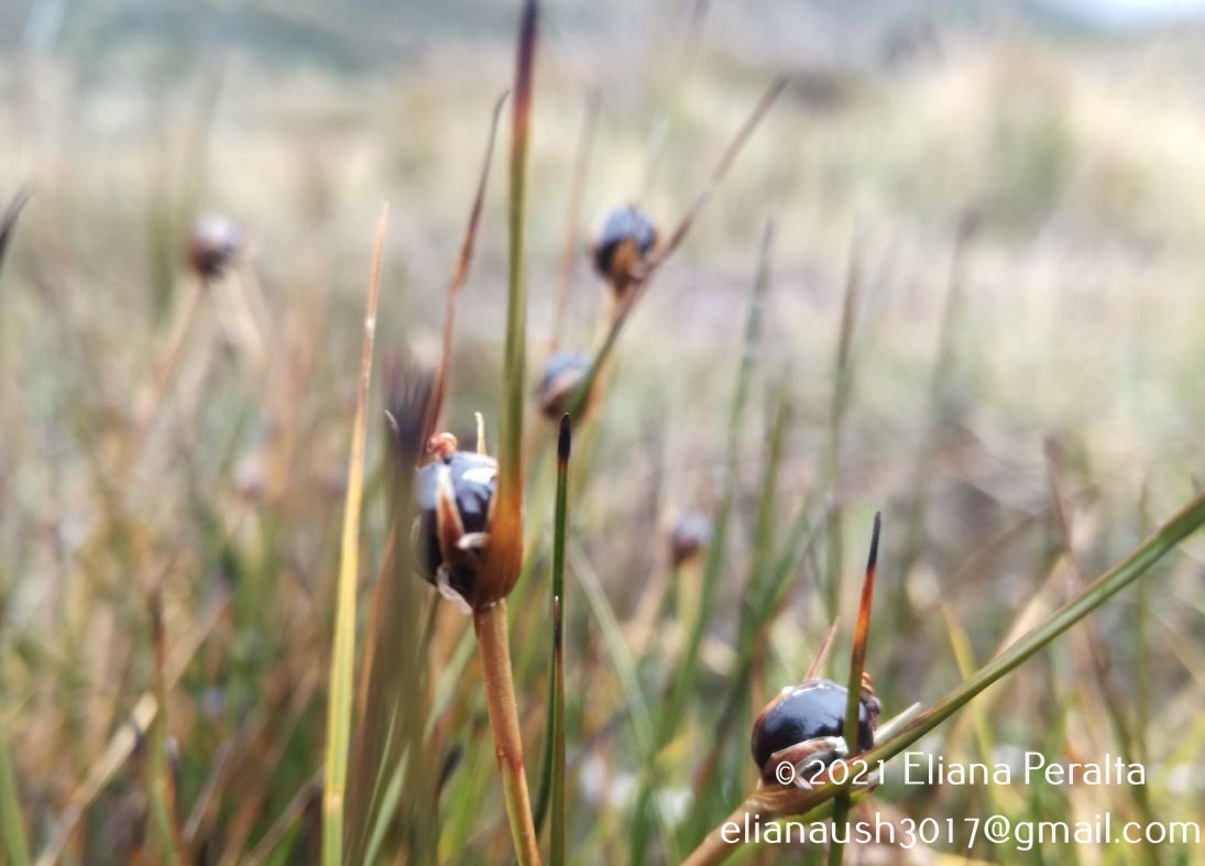 Perenne, cespitosa. Rizoma ramificado. Tallo cilindrico de 7-30 cm de alto con 2 catáfilas escamosas y 2 vainas áfilas en la base. Hojas erguidas, tiesas, unas más largas que el tallo y otras más cortas, con 2-4 tubuladuras, acanaladas, punzantes. Flor de 7-10 mm; pro-filo inferior prolongado en apéndice foliar de 18-35 mm; profilo superior membranáceo. Tépalos obtusos castaños, los externos de 8-9 mm, los internos de 7-8 mm. Estambres 6; anteras lineares con el conectivo prolongado en mucrón rojizo. Ovario trígono; estilo del largo del ovario; estigmas parduscos. Fruto esférico-oval, unilocular, de paredes casi leñosas; semillas de 1,2-1,4 mm, de superficie sutilmente reticulada.