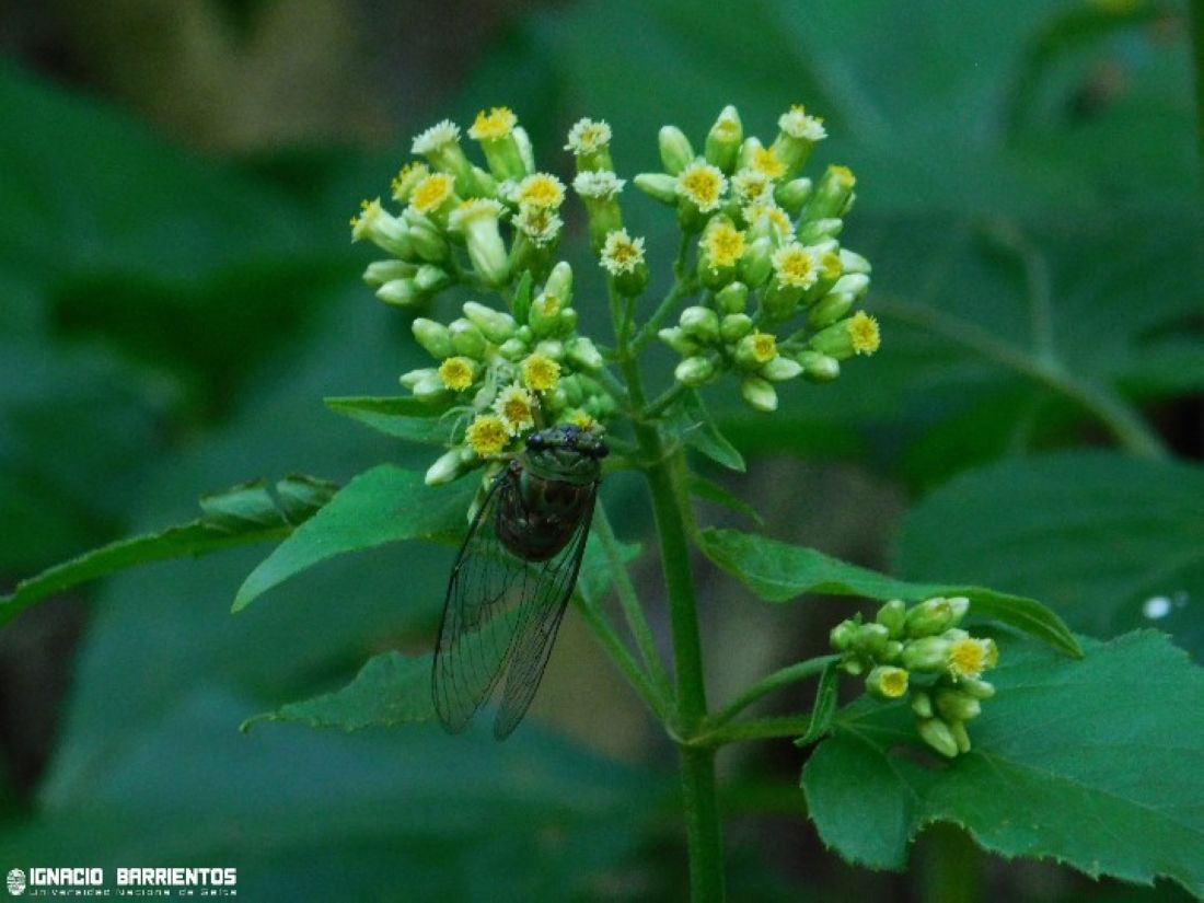 Hierbas perennes de 1,4-2,4 m de alto, hirsutas en las partes jóvenes, luego glabrescentes. Hojas opuestas, anchamente ovadas, de 10-20 × 9-18 cm, base algo decurrente en pecíolo angosto de 2,4-14 cm de largo, densamente hirsuto, un poco connado con el opuesto en anillo delgado, ápice agudo, espaciadamente pilosas en ambas caras, denticuladas o dentadas en el margen, con dientes mucronados. Capítulos con pedúnculos cortos dispuestos en cimas paniculadas apicales y en la axila de las hojas superiores. Involucro acampanado, de 6-8 × 7-9,5 mm; filarios ca. 3-seriados, ovados, luego oblongo-lanceolados, glabros, color caoba, multinervados, obtusos y con margen angosto, hialino. Receptáculo con páleas de 6-7 mm de largo, membranáceas, trífidas, el segmento central mayor que los laterales. Flores del margen ca. en 2 series, pistiladas, con lígula de 0,4-1,4 mm de largo y tubo delgado de 3-5 mm de largo; flores del centro perfectas, corola ca. 5 mm de largo, con tubo delgado en su mitad basal, luego acampanado hacia arriba, 5-dentado. Aquenios glabros, ca. 1,5 mm de largo, de color caoba. Papus 2- seriado, formado por cerdas ca. 5 mm de largo, escabriúsculas.