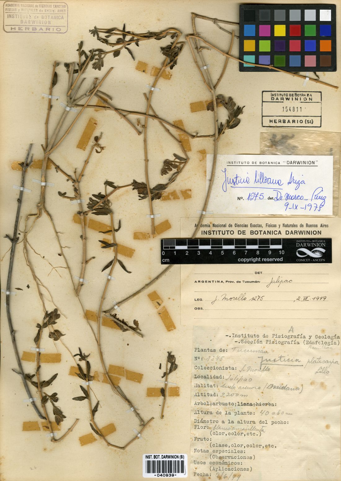 Observaciones: Justicia lilloana se caracteriza por sus hojas pequeñas y sus inflorescencias glandulosas, sus