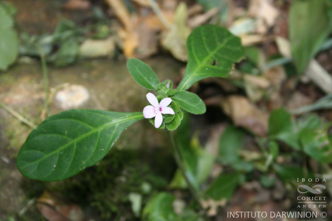 Hierba pequeña con rizoma horizontal y tallos aéreos erectos, hasta de 20 cm de alto, simples o ramificados, pubescentes, con los entrenudos hasta de 5 cm de largo. Hojas opuestas con pecíolo de 0,5-1,5 cm de largo; láminas ovadas, de 2-4 × 1-2,5 cm, redondeadas en el ápice, basalmente cuneadas y algo recurrentes sobre el pecíolo, pubérulas, discoloras, con el margen entero, ciliado, y las venas poco prominentes en el envés. Espigas terminales, cortas; brácteas anchamente espatuladas a obovadas, de 6-10 × 4-6 mm, oscuramente 3-nervadas, con el ápice ampliamente redondeado y la base cuneada, pubérulas, ciliadas en el margen; bractéolas pequeñas, angostas y algo más cortas que el cáliz. Flores con segmentos del cáliz hasta de 6 ×1 mm, estriados, pubérulos; corola azulada, lilacina o rosada, con el tubo de 5-8 mm de largo, la garganta breve, interiormente pubescente en la base del lóbulo anterior; lóbulos de 3-6 mm de largo, el anterior algo mayor y más ancho; anteras de 1 mm de largo, con los filamentos muy cortos; polen prolado; estilo pubérulo; ovario glabro. Cápsulas cilíndricas, ca. 7 × 3 mm, lisas. Semillas suborbiculares, de 2-3 mm de diámetro, con pelos gruesos, retrorsamente barbelados hacia el ápice; retináculos ca. 2 mm de largo, agudos.