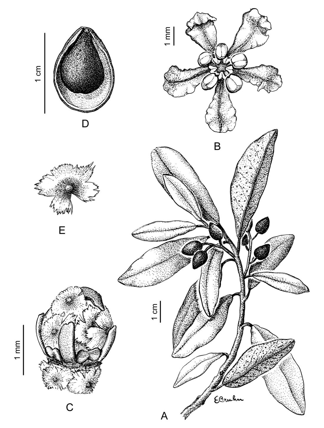 Árboles ca. 2-20 m de alto; ramas con tricomas lepidoto ferrugíneos cuando jóvenes, glabras a subglabras a la madurez. Hojas con pecíolos de 2-10 mm de largo; láminas de 2,5-7 × 1-3 cm. Inflorescencias con racimos de 0,8-5 cm de largo, generalmente más largos en las inflorescencias estaminadas; botón floral de 1,5-3 × 1,5-2,5 mm; pedicelos ca. 1,5 mm de largo; brácteas de 1-1,5 × 0,25 mm; sépalos de 1,25-2 × 1-2,5 mm; pétalos de 1,5-3 × 1-1,5 mm. Flores estaminadas con estambres ca. 1 mm de largo, anteras ca. 0,5 mm de largo; nectarios ca. 0,25 mm de largo. Flores pistiladas con estaminodios de 0,5-0,75 mm de largo; ovario de 1,25-1,5 mm de largo. Fruto de 7-10 × 5-7 mm; pedicelo de 3-5 mm de largo. Semilla de 5,5-6 × 4,5-5 mm.