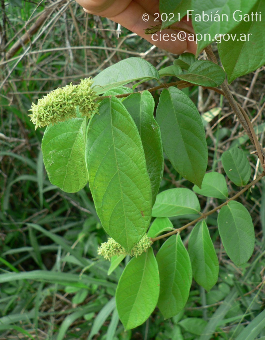Liana con tallos ramificados, pubescentes cuando jóvenes. Hojas opuestas con pecíolo de 0,3-0,5 cm long.; lámina elíptica de 4-12 x 2-5 cm, glabrescente en el haz y ocráceo-pubescente en el envés; base obtusa a redondeada y ápice agudo a acuminado. Inflorescencias angostamente cilíndricas, de 4-12 cm long. y 1-3,5 cm diám., densas; pedúnculo de hasta 2 cm long., pubescente; brácteas lanceoladas de 3-8 mm long., foliáceas y pubescentes. Flores cortamente pediceladas, color crema. Cáliz de lóbulos lanceolados de 2-4 mm long., foliáceos, exteriormente pubescentes; apéndices glandulares pocos (1-3), en posición alterna con los lóbulos. Corola rotácea de 0,6-0,8 cm diám.; tubo corto con anillo densamente albo-tomentoso en las fauces; lóbulos oblongos de 3 x 1 mm, interiormente pubérulos. Anteras de 2,5 mm long. aprox.; filamentos de 1 mm long., lisos. Ovario ovoide de 0,5 mm long., pubescente hacia el ápice; nectarios cónicos, levemente comprimidos, de igual long.; estilo de aprox. 2 mm long.; cabeza estigmática de 1,2 mm long. Folículos muy divergentes, subcontinuos, de 15-25 cm long. y 0,6-0,8 cm diám. Semilla de aprox. 1,5 cm long., con penacho de pelos de 4-5 cm long.