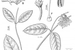 Mesechites sanctae-crucis (S. Moore) Woodson Ann. Missouri Bot. Gard. 19(4): 387. 1932 Mesechites sanctae-crucis es una enredadera con hojas coriáceas que se caracteriza por las inflorescencias bostricoides corimbiformes con el eje dividido di- o tricotómicamente y las flores blanco verdosas, con la garganta manchada de morado.