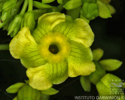 Observaciones: Prestonia cyaniphylla se caracteriza por las hojas glabras, las inflorescencias racemiformes, y las flores medianas, amarillo verdosas, con anteras inclusas.