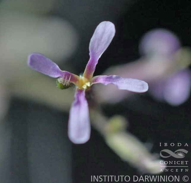 Hierbas anuales, con glándulas multicelulares grandes, éstas a veces mezcladas con tricomas simples. Tallos de (5-)10-40(-56) cm de alto, erectos o ascendentes, ramificados en la parte superior. Hojas basales no rosuladas, marchitándose a menudo durante la floración; pecíolos de (0,5-)1-2(-4) cm de largo; láminas oblanceoladas u oblongas, de (1,5-)2,5-8(-13) × (0,4-)0,8-2(-3) cm, glandulares, cuneada o atenuada hacia la base, ápice agudo, margen sinuado-dentado a dentado; hojas caulinares similares a las basales, progresivamente reducidas en tamaño hacia el ápice de la planta, las superiores a menudo enteras y subsésiles. Racimos plurifloros, alargados durante la fructificación; pedicelos fructíferos robustos, de (2-)3-5 mm de largo, divaricados, glandulares. Sépalos purpúreos, violáceos, lineares, de (3-)4-5(-6) × 0,5-0,7 mm; pétalos purpúreos, lavanda o rara vez blancos, oblanceolados, de 8-10(-12) × 12 mm, obtusos en el ápice, uña de 6-7 mm de largo; filamentos de 4-6(-7) mm de largo; anteras estrechamente oblongoides, ca. 1,5 mm de largo; óvulos 16-24. Frutos cilíndricos, de (1,4-)1,8-2,5(-3) cm × 1,5-2 mm, ligeramente curvados hacia arriba, corchosos, subtorulosos, glandulares o rara vez no glandulares; estilo de (0,6-)1-1,8(-2,2) cm de largo. Semillas castañas, oblongoides, de 1-1,4 × 0,8-1 mm. 2n = 14.