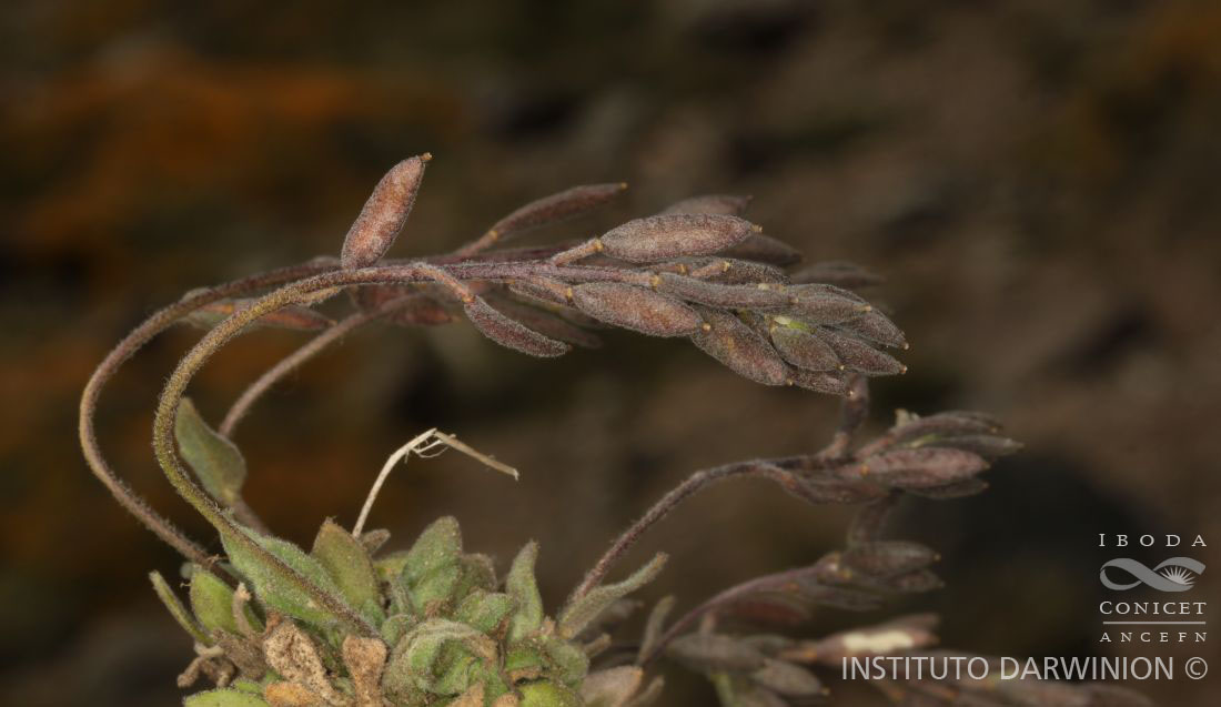 Hierbas perennes, cespitosas, de (2-)6-36(-63) cm de alto; cáudice simple o muy ramificado, usualmente cubierto por las hojas o sólo por las bases peciolares, las ramas rematan en rosetas. Tallos erectos a subdecumbentes, simples o ramificados, con tricomas estrellados subsésiles a cortamente pedunculados, a menudo mezclados con tricomas simples o ahorquillados hacia la base. Hojas basales rosuladas; láminas oblanceoladas a espatuladas, rara vez obovadas, de (0,3-)1-3(-4) cm × (1-)2-6(-14) mm, áoice agudo a obtuso, margen ciliado y entero, ambas superficies cubiertas escasa a densamente por tricomas estrellados, sésiles a pedunculados, rara vez mezclados con tricomas simples; pecíolos cortos, con la porción basal persistente; hojas caulinares 2-5(-8), sésiles, ampliamente ovadas a casi oblongas u obovadas, de (0,4-)0,8-2(-3) cm × (1-)2-6(-12) mm, enteras o dentadas. Racimos corimbiformes, alargados o no durante la fructificación, ebracteados o sólo con las flores basales bracteadas; pedicelos fructíferos divaricados a ascendentes o suberectos, rectos o rara vez curvados, de (1-)2-9(-15) mm de largo. Sépalos ovados a oblongos, caducos, rara vez persistentes, erectos, de (1,8-)2-3(-4) mm de largo, , base no sacciforme, ápice redondeadopubescentes, con tricomas estrellados, ahorquillados, rara vez simples; pétalos blancos, espatulados, rara vez obovados, de 3-4,5(-5) ×1-2 mm, reducidos hacia la base en forma de uña, ápice emarginado u obtuso; filamentos blancos, erectos, de (1,5-)2,2-3 mm de largo; anteras ovoides, de 0,3-0,5 mm de largo; óvulos 20-34. Frutos comprimidos, amplia a estrechamente oblongoides, a veces lanceolados u ovoides, no retorcidos, de (3-)5-9(-13) × (1,5-)2-3(-3,5) mm; valvas por lo general densamente pubescentes, con tricomas estrellados, sésiles o cortamente pedunculados, muy rara vez glabrescentes; estilo de 0,2-0,8(-1) mm de largo; estigma entero o ligeramente 2- lobulado. Semillas 2-seriadas, comprimidas, ovoides a generalmente oblongoides, de (0,9-)1-1,1(-1,2) × 0,6-0,7 mm, no aladas, castaño claras a oscuras.