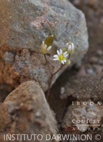 Hierbas anuales, escapíferas, de (2-)5-20(-30) cm de alto. Escapos erectos a ascendentes, áfilos, pubescentes cerca de la base, glabros hacia el ápice. Hojas basales rosuladas; pecíolos breves; láminas obovadas, espatuladas, oblanceoladas, lanceoladas, oblongas o lineares, de 2-18(-30) × (0,5-)1-5(-10) mm, , base cuneada a atenuada, ápice agudo a obtuso, margen entero o 1-5-dentado a cada lado del nervio medio, ambas superficies pubescentes, con tricomas ahorquillados o estrellados, no ramificados o pedunculados. Racimos corimbosos, ebracteados, por lo general alargados considerablemente durante la fructificación; raquis glabro, por lo general conspicuamente flexuoso; pedicelos fructíferos delgados, divaricados a ascendentes, glabros, de (2-)5-20(-35) mm de largo. Sépalos erectos, caducos, oblongos, de 1,5-2,5 mm de largo, base no sacciforme, glabrescentes o pubescentes, con tricomas simples o bifurcados; pétalos blancos, profundamente 2-fidos, de (1,5-)2-4,5(-6) × 1-2 mm; filamentos de 1-2 mm de largo; anteras ovoides, de 0,2-0,4 mm de largo; óvulos (20-)32-70(-84). Frutos comprimidos, obovoides, oblanceolados, lanceolados, elipsoides, oblongoides o lineares de (2,5-)4-9(-12) × 1,5-2,5(-3,5) mm; valvas glabras, inconspicuamente nervadas, ápice y base obtusa a aguda; estilo muy breve, hasta de 0,2 mm de largo; estigma entero. Semillas ovoides, ligeramente comprimidas, de 0,3-0,6(-1) × 0,2-0,4 mm.