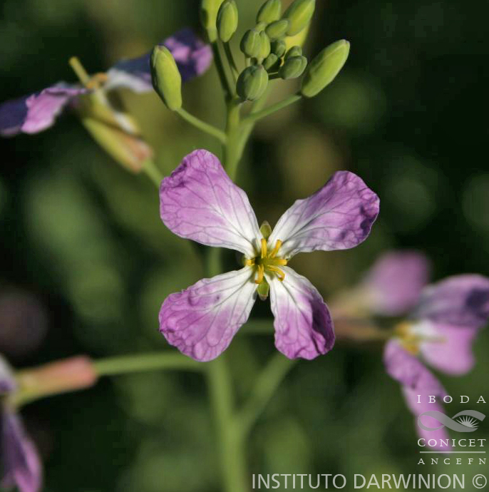 Tallos de (10-)20-80(-100) cm de alto, generalmente ramificados desde la base, glabros o retrorsamente hirsutos o híspidos. Hojas basales a menudo marchitas durante la fructificación; pecíolos de (1-)2-5(-7) cm de largo; láminas ampliamente oblanceoladas, de (2-)4-15(-20) × (1-)2-4(-6) cm, simples a pinnatisectas; lóbulos laterales 3-9 a cada lado, margen entero o dentado; hojas caulinares superiores subsésiles, lobuladas o no. Pedicelos fructíferos erectos a ascendentes, de 2-8(-10) mm de largo, robustos, subadpresos al raquis. Sépalos oblongos, de (6-)7-10(-12) × 1,5-2,2 mm, glabros o con un mechón de tricomas subapicales, el par exterior cuculado o no; pétalos por lo general obovados, de (1,2-)1,5-2(-2,6) cm × (4-)5-7(-9) mm; filamentos medianos de (8-)10-13(-15) mm de largo; anteras de 2-3 mm de largo. Frutos lineares u oblongoides, de (1,1-)1,5-3,5(-4) cm × (2,5-)3-5 mm, glabros o retrorsamente híspidos o hirsutos; valvas de (0,7-)1-2,5(-3,2) mm de largo, con un nervio central prominente; segmento terminal ensiforme, aplanado, de (4-)5-10(-11) mm de largo, 5-nervio, de igual largo o ligeramente más corto que las valvas. Semillas castaño pálidas o grisáceas, subglobosas a ovoides, de 1,6-2,5 mm de largo. 2n = 22.