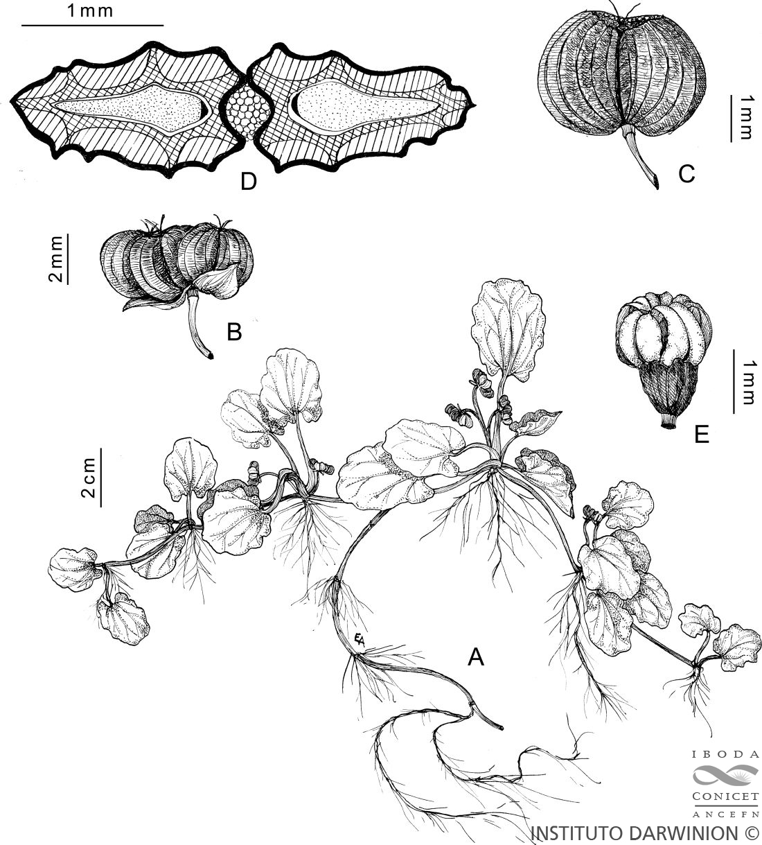 Hierbas perennes; tallos largamente rastreros, radicantes, glabros o pubescentes cuando jóvenes. Hojas en rosetas más menos foliadas, pecíolo de 1-8(-20) cm de largo; lámina 5-9 palmatinervada, suborbicular a anchamente ovada de 2-5(-7) cm de diámetro, con base cordada y margen entero o crenado, velloso-glabrescente a glabra, excepto en el envés, sobre las venas. Pedúnculos axilares, 1-5 por roseta, de 1-4 cm de largo; umbelas compactas, 2-3-floras; involucro de 2(-3) brácteas ovadas ca. 3 × 2 mm, escariosas, más o menos vellosas, persistentes. Pétalos blancos, rosados o violáceos. Frutos muy comprimidos lateralmente, suborbiculares, más anchos que largos, de 3-4 mm de diámetro, glabros o ligeramente vellosos.