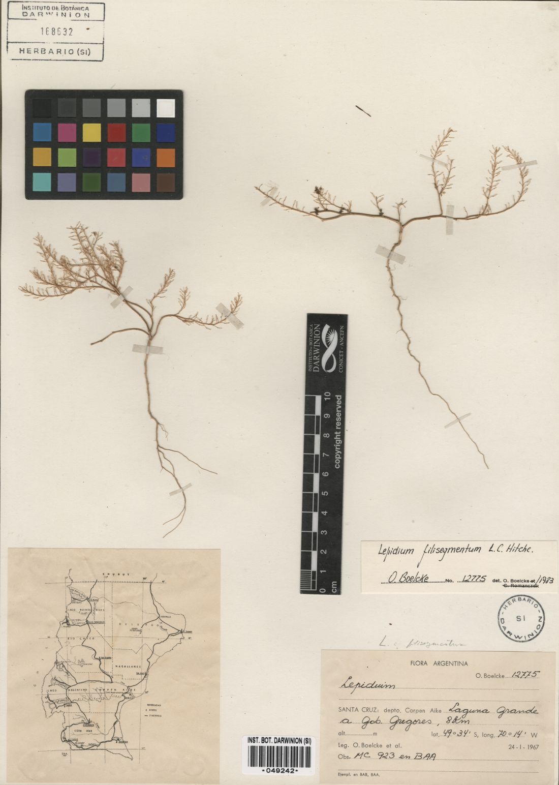 Hierbas anuales, escasamente pubescentes. Tallos de 2-20 cm de alto, ramificados desde la base, a menudo decumbentes, pubescentes, con tricomas hasta de 0,15 mm de largo. Hojas basales con pecíolos de 0,5-2 cm de largo; láminas 2- pinnatisectas, con 3-5 pares de lóbulos laterales, segmentos terminales enteros, hasta de 1 mm de ancho; hojas caulinares con pecíolos cortos a subsésiles; láminas lanceoladas, base atenuada a subcuneada, no auriculada, margen dentado a inciso. Racimos laxos durante la fructificación, puberulentos; pedicelos fructíferos delgados, recurvados o rectos, distalmente divaricados, teretes, puberulentos, de 2-3 mm de largo. Sépalos oblongos de 0,5-0,8 mm de largo, persistentes, ápice blanco, escasamente pubescentes; pétalos ausentes o vestigiales y más cortos que los sépalos; estambres 2, medianos; filamentos de 0,5-0,8 mm de largo; anteras ca. 0,1 mm de largo. Frutos dehiscentes, oblongoobovoides, de 2,3-2,8 × 1,7-2,1 mm, glabros, emarginados y estrechamente alados en el ápice; escotadura apical de 0,2-0,25 mm de largo; estilo de 0,05-0,15 mm de largo, inserto en la escotadura apical. Semillas castaño-rojizas, ovoide-oblongoides, no aladas o rara vez aladas apicalmente, de 1,2-1,4 × 0,6-0,7 mm; cotiledones incumbentes.