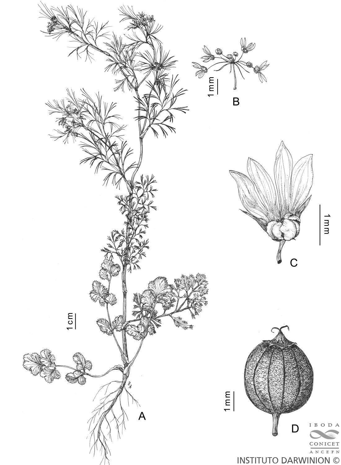 Hierbas de 20-60 cm de alto. Hojas dimórficas, las basales y caulinares inferiores pecioladas, pecíolos de 2-14 cm de largo; lámina 1-(2) pinnada, de 3-15 × 2-10 cm, últimos segmentos anchos, obovados o flabeliformes, dentados o incisos de 1-2 × 1-1,5 cm; hojas caulinares medias y superiores subsésiles o sésiles, 2-3 pinnatisectas, con los últimos segmentos lineares a filiformes. Umbelas 2-8 radiadas, sin involucro; umbélulas 7-10-floras, involucelo con 3-6 bractéolas de 2-4 mm de largo, desiguales, lineares. Frutos globosos, de 3-5 mm de ancho.
