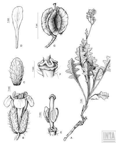 Se distingue de la subespecie tipo por presentar tallos aéreos de (7,1-)13-40(-52) cm de alto, generalmente ramificados en la parte superior; láminas de las hojas basales de (0,8-)2,2-10(-15) × (0,7)-1,2-3,5(-5) cm; hojas caulinares de 1,3- 3,8(-4,8) cm de largo; sépalos de (1,7)-2,2-3,4(-3,9) mm de largo, pétalos de (2,4)-3,4-5,2(-5,8) mm de largo; filamentos estaminales de (1,4-)2,2- 3,8(-4,4) mm de larg