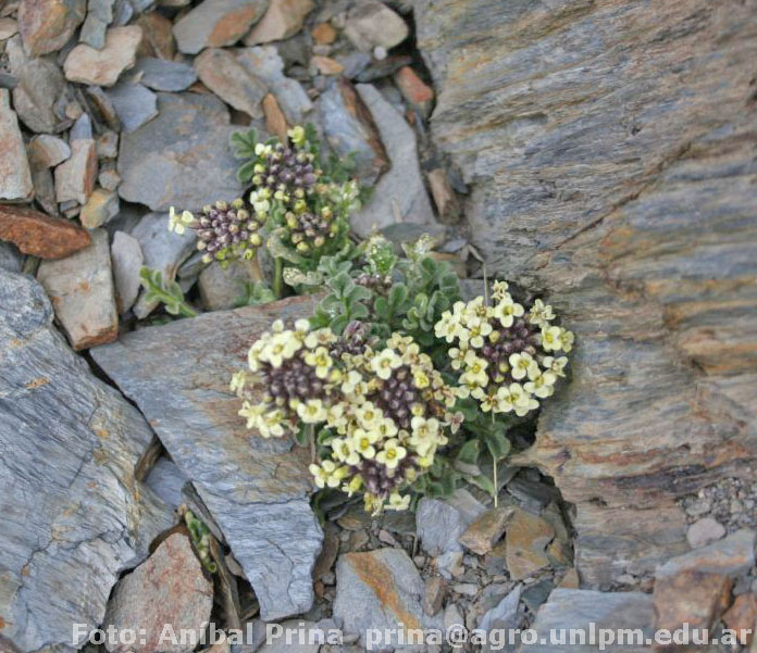 Hierbas perennes, escaposas o no, con cáudices leñosos simples o ramificados. Tallos aéreos de (3-)6-40(-52) cm de alto, erectos, 1 a varios ramificándose desde la base, simples o ramificados en la parte superior, esparcida a densamente hirsutos con tricomas simples, teretes y antrorsos a extendidos, de 0,4-0,9 mm de largo. Hojas basales largamente pecioladas, pecíolos de (1-)2-10(-12) cm de largo, rosuladas; láminas de contorno oblanceolado, pinnatífidas a pinnatilobadas, de (0,7-)2-10(-15) × (0,3-)0,6-3,5(-5) cm, hirsutas, lóbulos oblongos a ovados, obtusos a redondeados; hojas caulinares presentes o ausentes, si presentes pecioladas a subsésiles, menores que las basales. Racimos terminales y menos frecuentemente axilares, ebracteados, densos, corimbosos, elongados en la fructificación, de 3-15 cm de largo; raquis hirsuto, recto; pedicelos fructíferos divaricados a ascendentes, de 5-15 mm de largo, rectos, hirsutos, delgados, conspicuamente extendidos hacia el ápice. Sépalos ovados a oblongos, de (1,7-)2-5 × (1-)1,5-3 mm, hirsutos, erectos, no sacciformes, caducos, de márgenes membranáceos; pétalos blancos a blanco-cremosos, lineares, angosta a anchamente espatulados o obovados, de (2,4-)3,4-9(-10,5) × 1,4- 2,5 mm, con uña leve a conspicuamente diferenciada, con numerosas papilas en la base; estambres tetradínamos; filamentos erectos, dilatados y densamente papilosos en la base, de (1,4-)2,2- 7,4 mm de largo, los de los pares internos connados desde la base hasta 1/3-4/5 de su tamaño; anteras oblongoides, de 0,8- 1,4 mm de largo; glándulas nectaríferas confluentes, rodeando la base de todos los filamentos. Frutos suborbiculares, glabros; valvas 3, menos frecuentemente 5-aladas, con nervios transversales tenues, de (3,5-)4-10 × 3,2-8(-9) mm; alas laterales y dorsal similares, enteras, rectas o ligeramente onduladas, de 0,5-2 mm de ancho; ginóforo de 0,5-3 mm de largo; estilo de 1-3 mm de largo; estigma capitado. Semillas oblongoides, de 2,5-3,5 × 1,5-2 mm, no aladas, globosas a ligeramente comprimidas; cotiledones oblicuamente incumbentes.