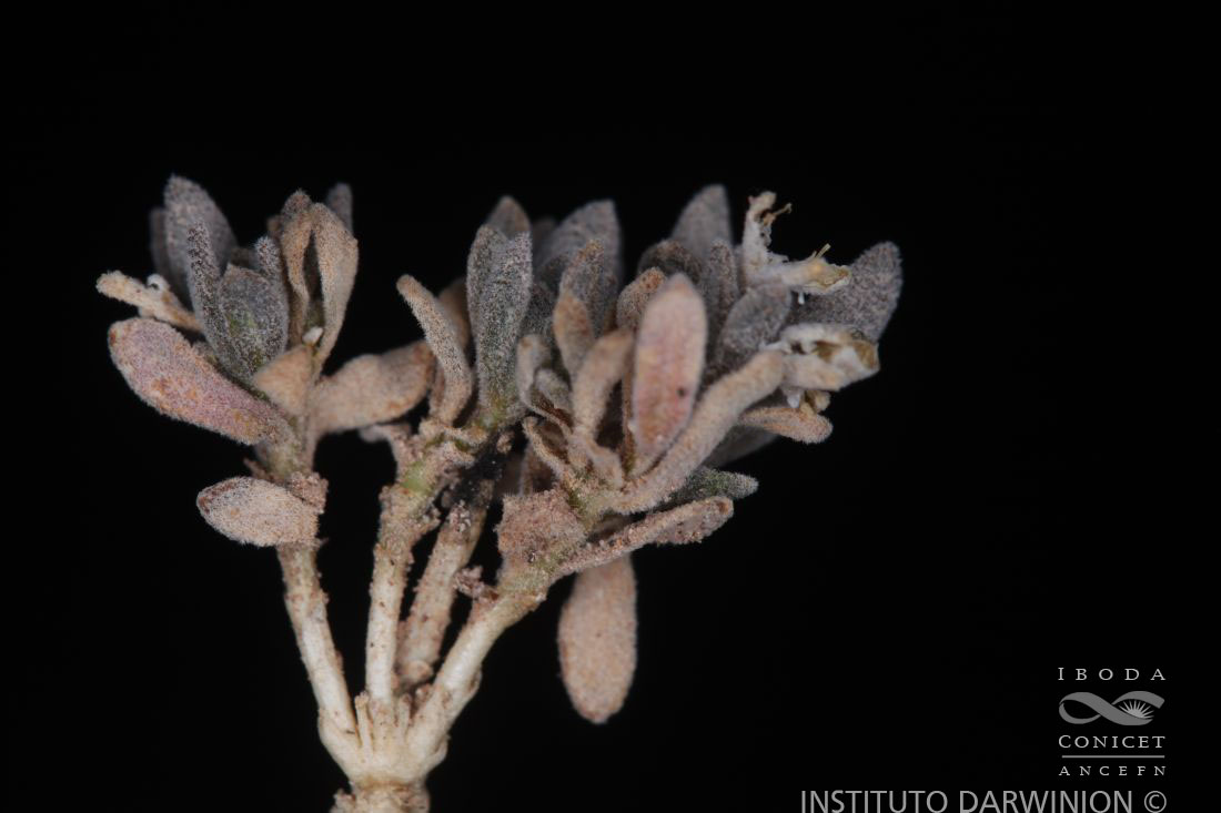 Hierbas perennes, densamente plateado-tomentosas; rizomas tiernos, hasta de 1 mm de diámetro, no escamoso. Tallos 1 a varios emergiendo desde el rizoma, de 1-2,5 cm de alto, cubiertos por las bases persistentes de hojas de años anteriores. Hojas basales oblongas a ovadas, de 2-4 × 0,6-1,7 mm, base cuneada, ápice obtuso, margen entero; hojas caulinares similares a las basales pero más pequeñas, de base no auriculada y margen entero. Racimos 2-4-floros; pedicelos fructíferos de (1-)1,3-2,6(-4) mm de largo, ascendentes, rectos. Sépalos oblongos, persistentes, de (1,2-)1,5-2 × (0,5-)0,7-0,9 mm, canescentes, densamente tomentosos en la cara externa, pubescentes en la interna; pétalos lineares, de 0,6-1,1 × 0,2-0,3 mm, blancos, persistentes; filamentos lineares, de 0,7 mm de largo, blancos, persistentes; anteras de 0,2-0,3 mm de largo. Frutos lanceolados a ovoides, de (2-)2,6-4(-5) × 1,3-1,8 mm, teretes; valvas tomentosas en la cara externa, glabras en la interna, base redondeada, ápice subagudo; estilo de 0,2-0,3 mm de largo, glabro. Semillas oblongas, castaño-amarillentas, de 0,8-1 × 0,5-0,6 mm.