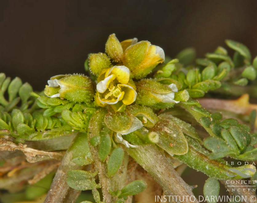 Hierbas perennes, glabras. Tallos de (0,5-)2-10(-15) cm de alto, postrados o rara vez erectos, solitarios o algunos pocos desde la base. Hojas basales pinnatisectas, de (1,5-)2,5-7(-10) cm de largo; pecíolos de 0,5-2(-4) cm de largo; lóbulos laterales 5-9 a cada lado, oblongos a ovados, enteros o lobulados, 1- dentados a cada lado o proximalmente, de 2-6(-11) × 0,5-2(-4) mm; hojas caulinares similares a las basales, más cortas, pecioladas, no auriculadas. Racimos 3-12-floros, corimbiformes, ebracteados o sólo las flores más basales bracteadas, alargados o no durante la fructificación; pedicelos fructíferos delgados, divaricados, de (0,5-)1,5-4(-6) mm de largo, glabros. Sépalos erectos, ovados, glabros o dorsalmente papilosos, persistentes hasta después de la madurez del fruto, margen membranáceo, no sacciformes, de 2-3 mm de largo, ligeramente más largos durante la fructificación; pétalos amarillos, obovados, de 2,5-4 × 1-2 mm; filamentos erectos, de 1,5-2 mm de largo; anteras ovoides, de 0,3-0,6 mm de largo; óvulos 50-80. Frutos ovoides a lanceolados, teretes, de 5-11 × 2-4 mm; septo completo; estilo de 0,5-2 mm de largo; estigma entero. Semillas 2-seriadas, ovoides, ligeramente aplanadas, castaño claro a amarillo pálido, coliculadas, de 0,7-1,1 × 0,5-0,7 mm.