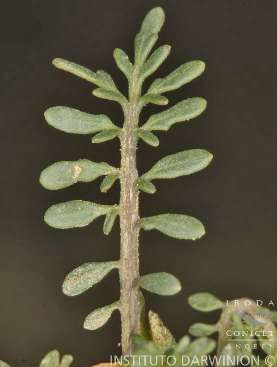 Hierbas perennes, glabras. Tallos de (0,5-)2-10(-15) cm de alto, postrados o rara vez erectos, solitarios o algunos pocos desde la base. Hojas basales pinnatisectas, de (1,5-)2,5-7(-10) cm de largo; pecíolos de 0,5-2(-4) cm de largo; lóbulos laterales 5-9 a cada lado, oblongos a ovados, enteros o lobulados, 1- dentados a cada lado o proximalmente, de 2-6(-11) × 0,5-2(-4) mm; hojas caulinares similares a las basales, más cortas, pecioladas, no auriculadas. Racimos 3-12-floros, corimbiformes, ebracteados o sólo las flores más basales bracteadas, alargados o no durante la fructificación; pedicelos fructíferos delgados, divaricados, de (0,5-)1,5-4(-6) mm de largo, glabros. Sépalos erectos, ovados, glabros o dorsalmente papilosos, persistentes hasta después de la madurez del fruto, margen membranáceo, no sacciformes, de 2-3 mm de largo, ligeramente más largos durante la fructificación; pétalos amarillos, obovados, de 2,5-4 × 1-2 mm; filamentos erectos, de 1,5-2 mm de largo; anteras ovoides, de 0,3-0,6 mm de largo; óvulos 50-80. Frutos ovoides a lanceolados, teretes, de 5-11 × 2-4 mm; septo completo; estilo de 0,5-2 mm de largo; estigma entero. Semillas 2-seriadas, ovoides, ligeramente aplanadas, castaño claro a amarillo pálido, coliculadas, de 0,7-1,1 × 0,5-0,7 mm.